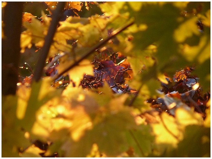 I don't know what to say anymore but mille gracie to you, who are sharing this with me and to the evening sun who created this wonder. Yes, I admit it: I am getting drunk by these colours. And that's why I put a bottle of whine next to me to dwell on it just a little bit more.