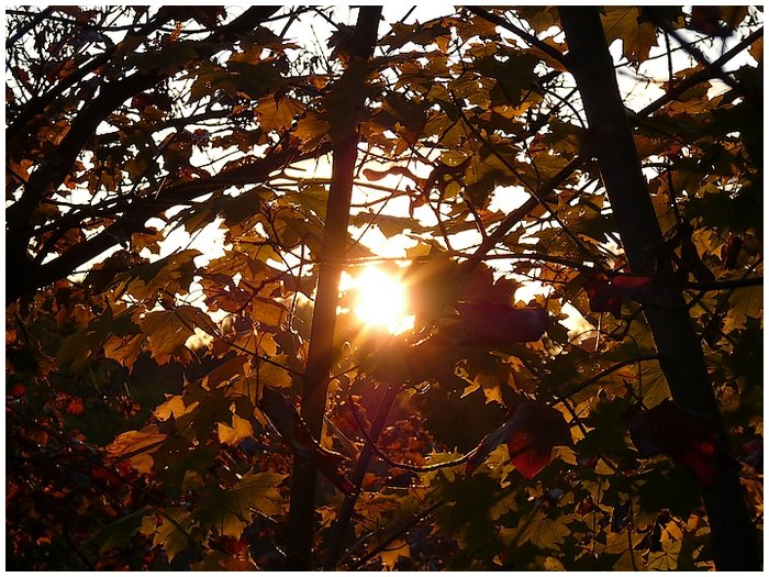 It is, Debbie, isn't it? You have to imagine this place. the train station is nothing special. A little wooden "shed" with a restaurant in it, a bridge crossing the railroad tracks. On this bridge the entree to plattform below and a newpapershop in it. When I reached the stairs to the bridge, I saw the sun setting slowly ... and took a closer look at the bushes and trees ... and was dazzled! Luckily I had 15 minutes before the next subway should leave.