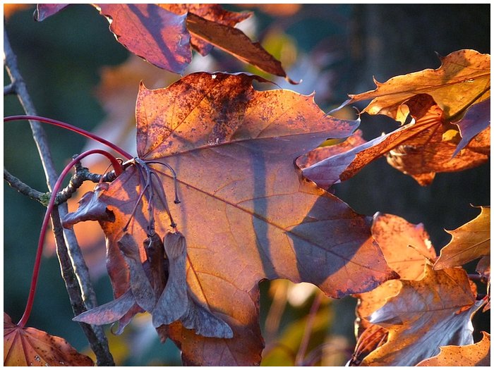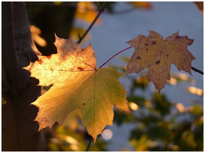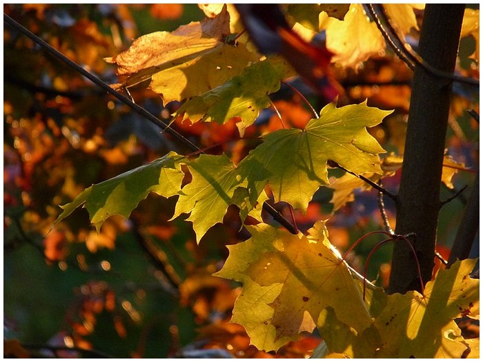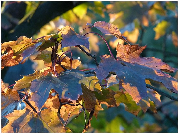 Löven ser verkligen vackra ut så länge dom sitter kvar i grenarna. Här hos oss har de redan börjat falla ner.... Härliga stämningsfulla höstbilder!!!