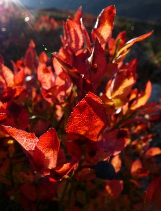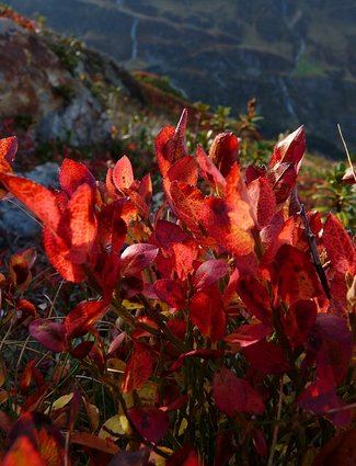 What fantastic photos! They are truly beautiful, the mountains and colours of the hillsides with the bushes and plants is spectacular. I loved the close-ups of the fiery red bushes and flowers. The colours asof the mountains as the time of day changes makes each photo different in texture and colour. You have a great collection of photos on this trip. Thanks for thw hike, I couldn't make it myself so enjoyed it through your eyes.