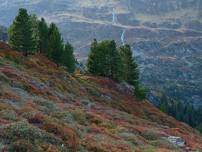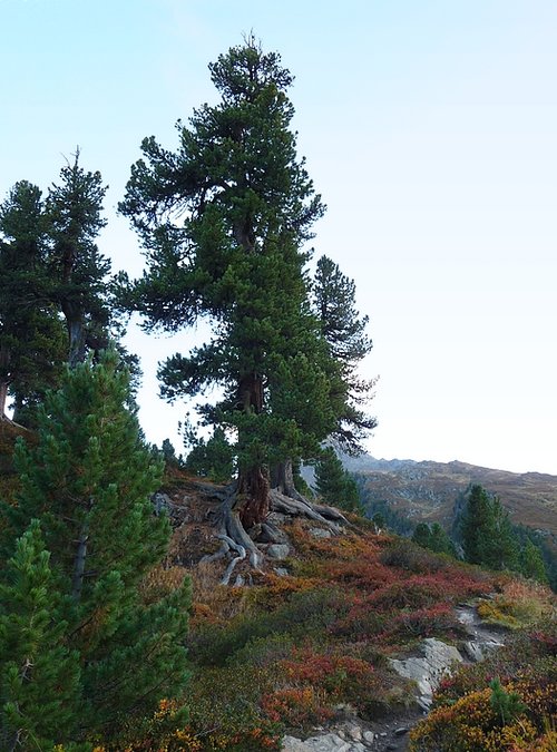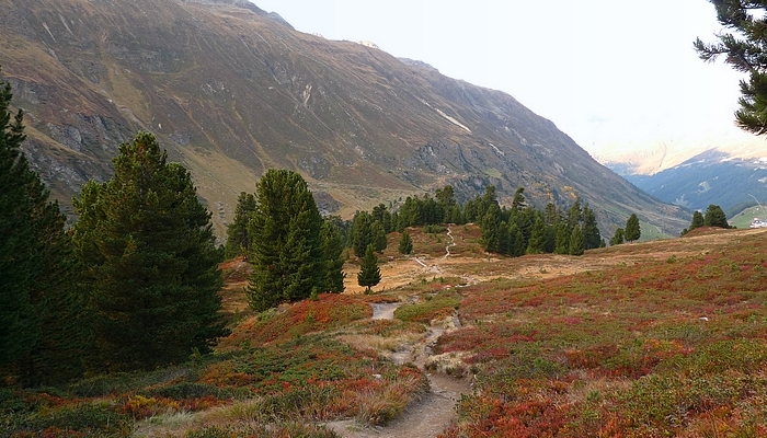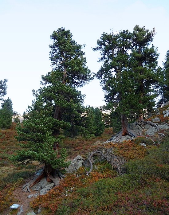 Below the natural monument "Swiss Stone Pine Forest of Obergurgl" - Unten das Naturdenkmal Obergurgler Zirbenwald