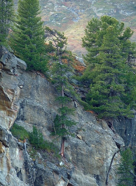 It intrigues me! How can pines grow so tall, survive every storm for decades on a naked downsloping piece of rock?