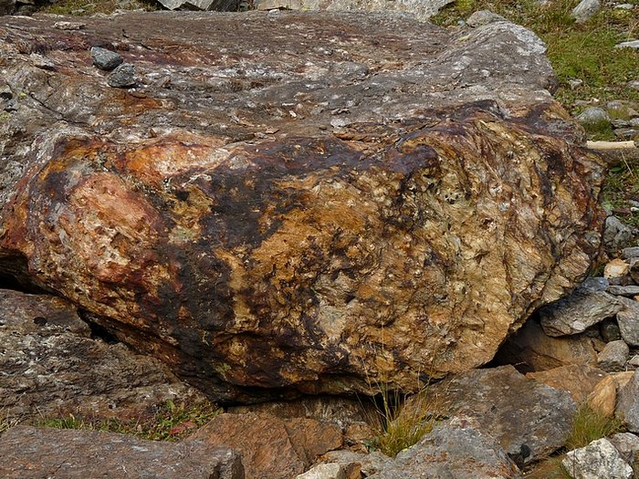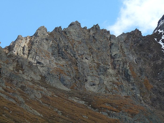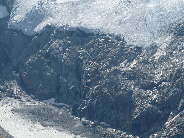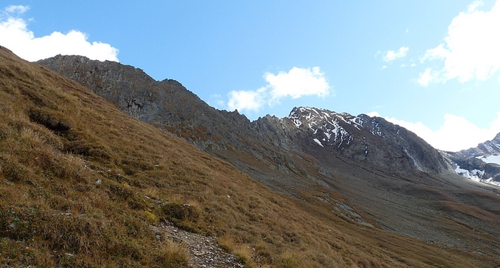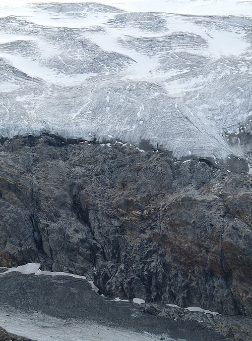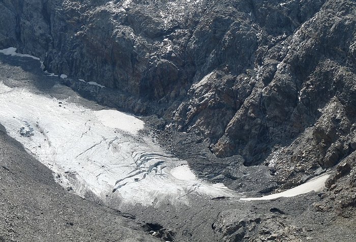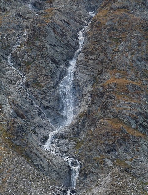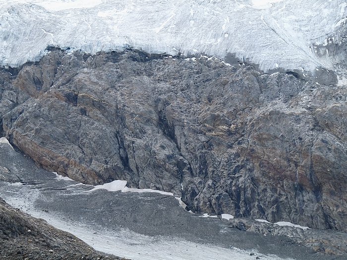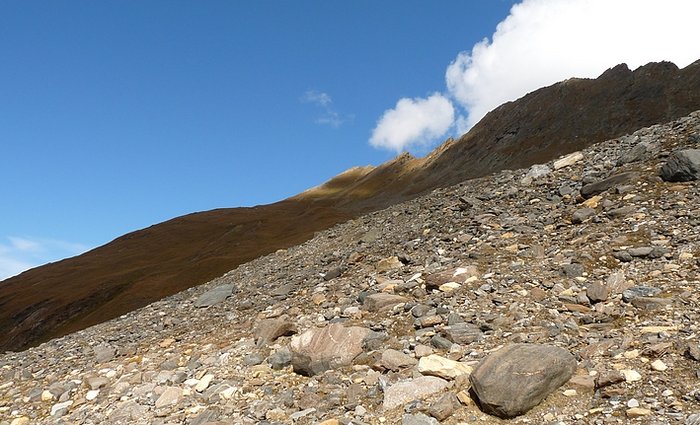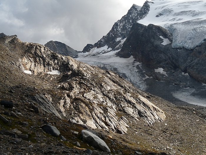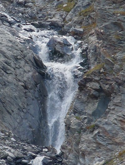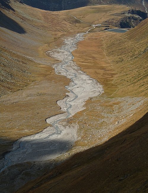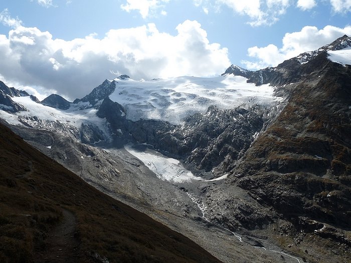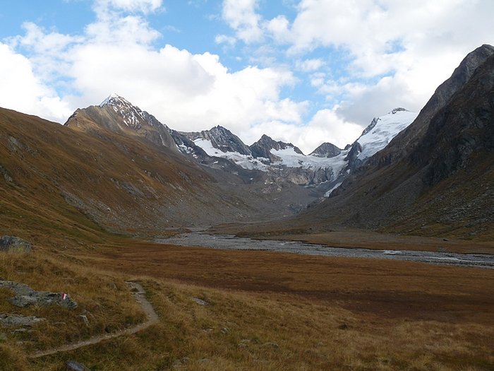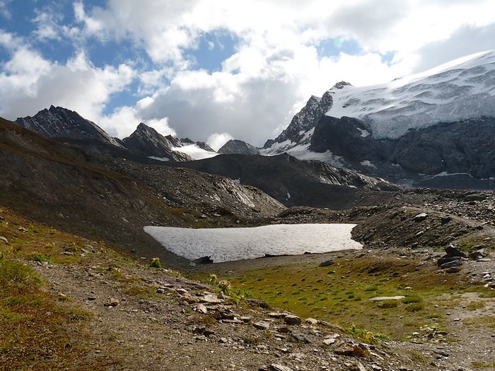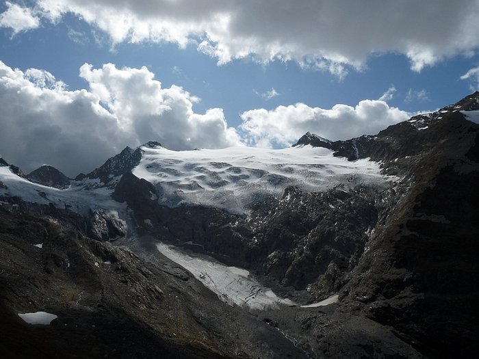 Here too the devastating signs of two retreating glaciers. On my map the Rotmoosferner on the left was splitting in two tongues at the ridge and running much further into the valley, being connected with the Wasserfallferner on the right hand side and reaching all the way down to the hiking trail. But in reality it didn't only a big moraine was left.