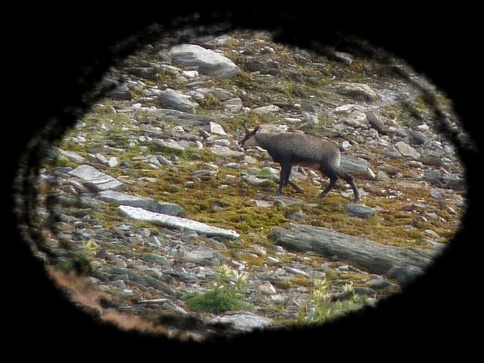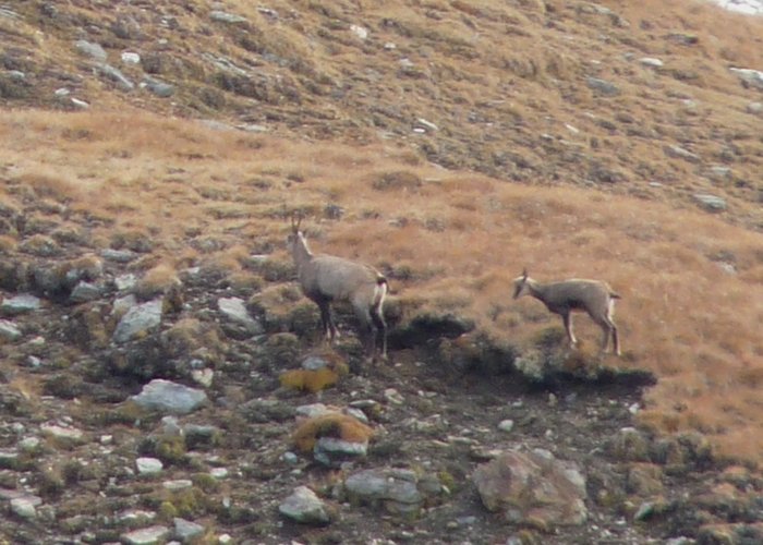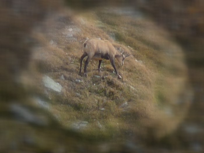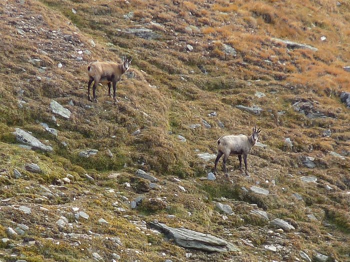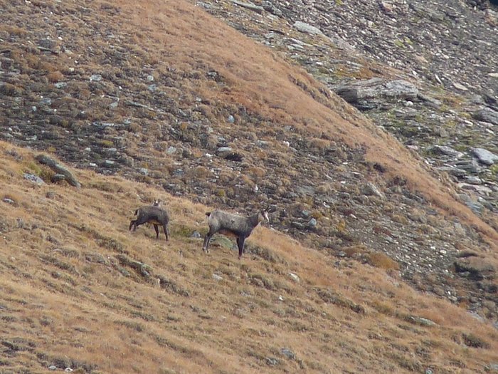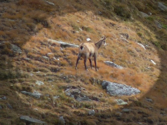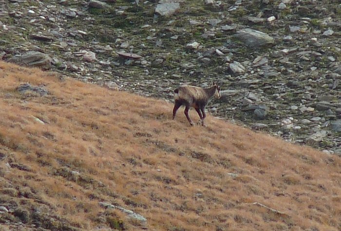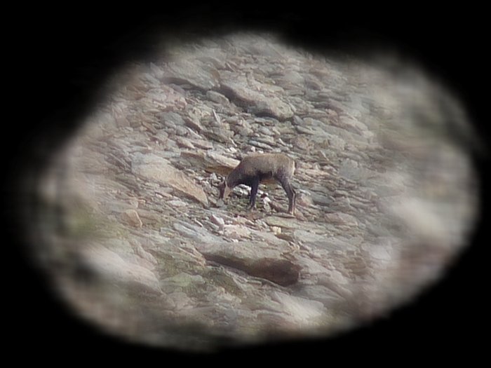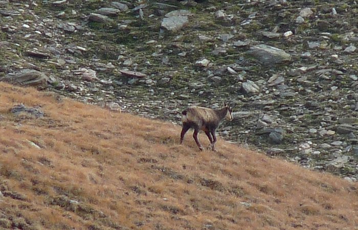 Below these slopes dwelled a further reason for my slow progess - a pride of chamois. It was the first time that I saw those animals. They were just small moving dots in the distance, but as I didn't want to shy them away I went down to the ground and watched them through my tele for easily half an hour or an hour. It was an impossible position to make decent photos, but I tried nevertheless. However this situation was also the reason why I finally bought a tripod these days. I hope I don't forget to pack it on my next trip.