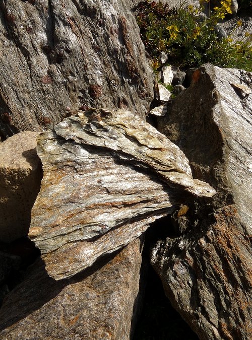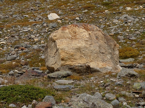 Walking through the Rotmoos valley was in parts like walking through a stone desert. The moraine dominating the landscape much more than in the Gaisberg valley. There also seemed to be a greater variety of rocks and somehow all this made the struggling flowers and plants extra precious. Water searched its path through the grey rocks, cascading downwards in long small falls. And when the haze of the clouds clawed their way down the slopes the mosses, lichen and other vegetation seemed to shimmer like a weakening rainbow.