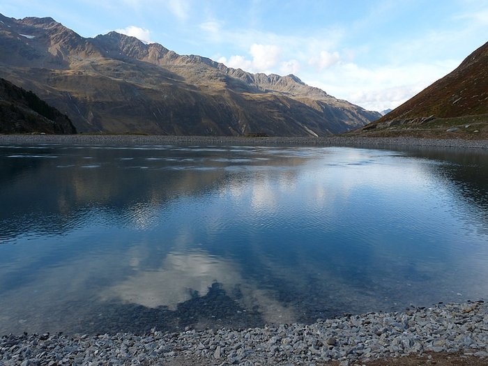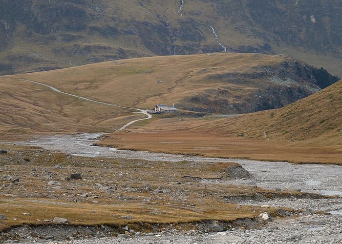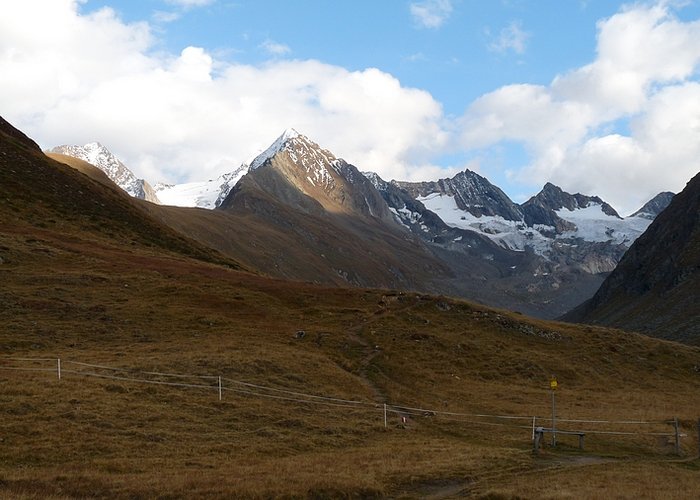 Marmots were whistling, the sound echoing from the rock walls, but no animal was to be seen apart of some butterflies and bees. In the distance I could see the Schönwies cabin my landmark for the decent back to Obergurgl. Slowly I closed the distance planning to make a break there before going down to the village.