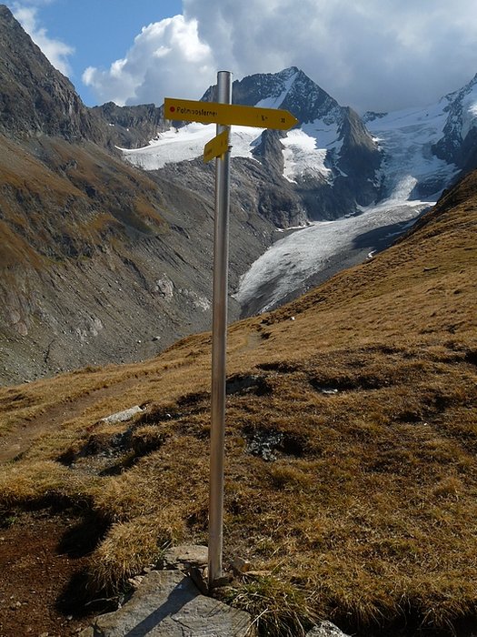 The biggest trail marking to be found far and wide. Otherwise marking consist of stones painted with the Austrian colours red-white-red.