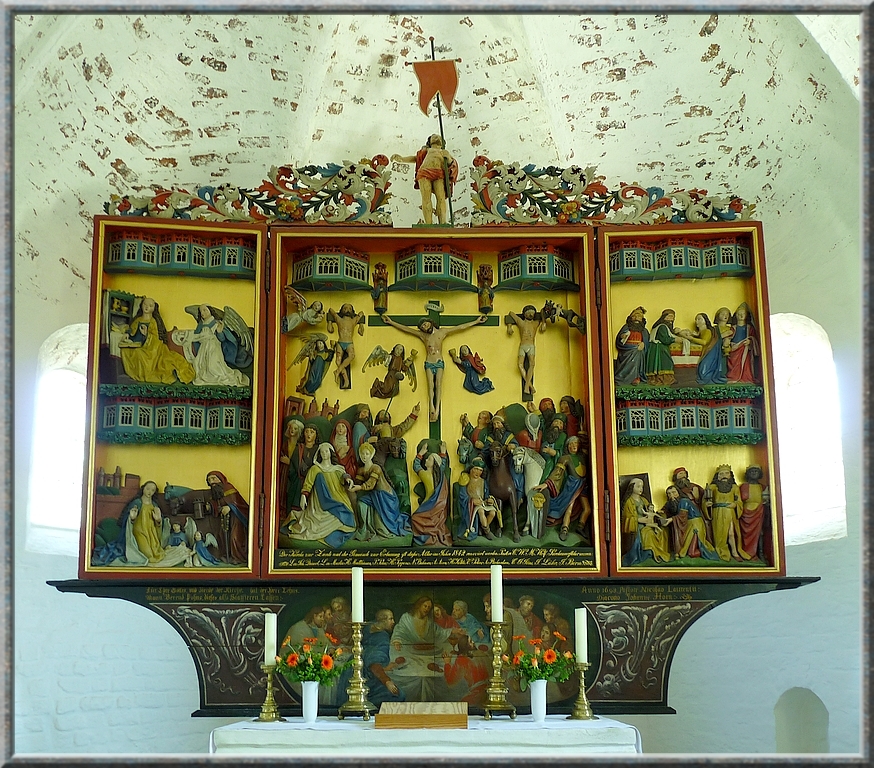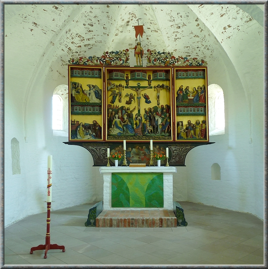 According to two different internet sources the church St. Peter was founded in the 11th or 12th century. At that time the town around the church was called Ulstrup. The church was first named in a document in 1373, when the aldermen offered free escort and protection to a group of merchants from Hamburg. In 1445 a spectacular court case was held on the thing place infront of the church. Through that the church got widely known. As a result of this and also due to considerable landlosses because of sanddrifts the village Ulstrup changed its name to St. Peter.