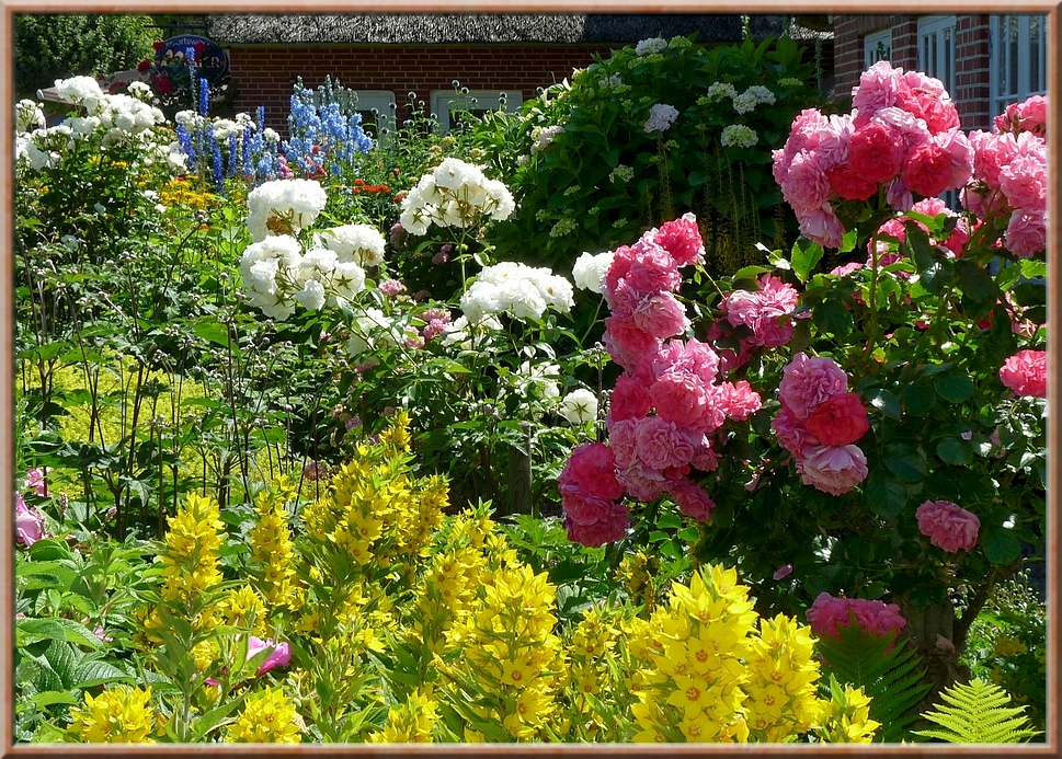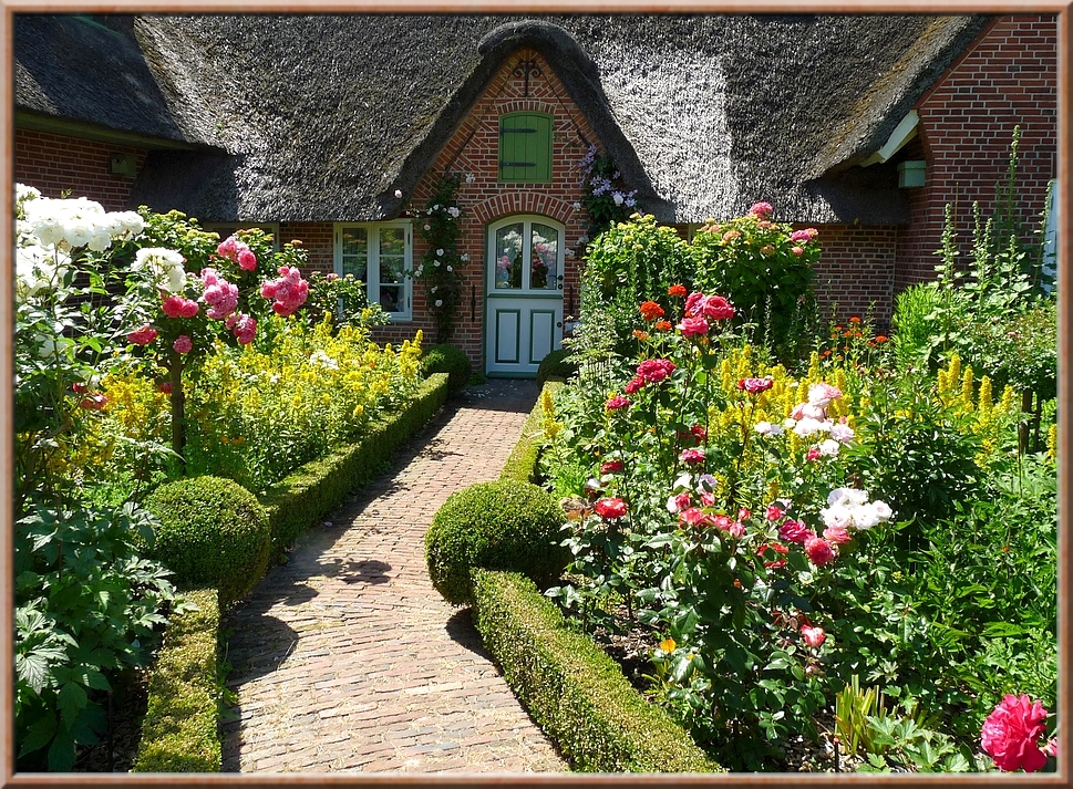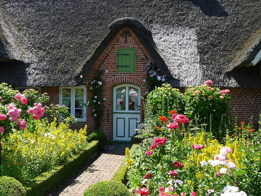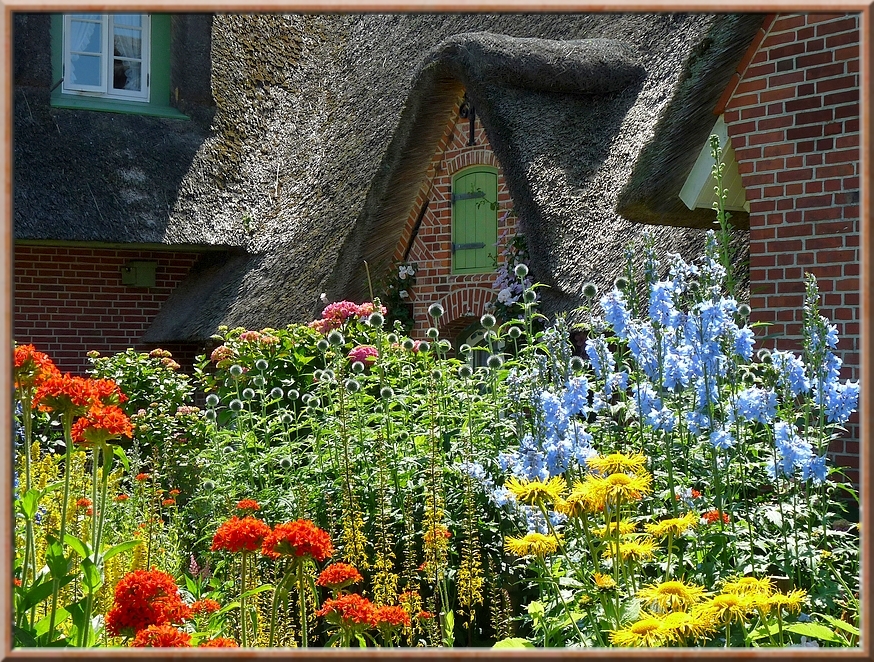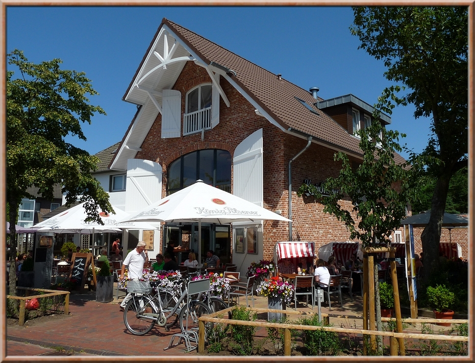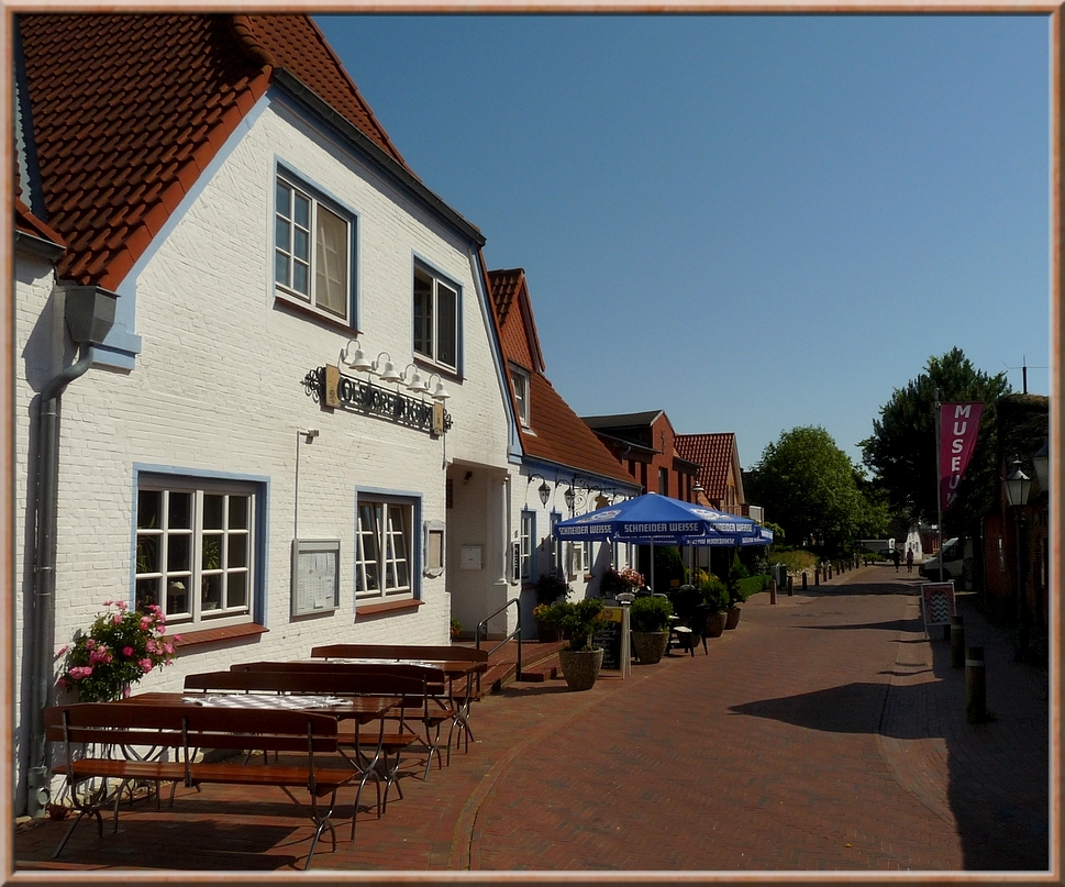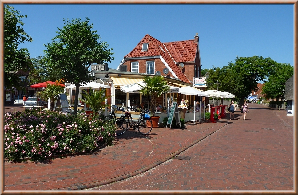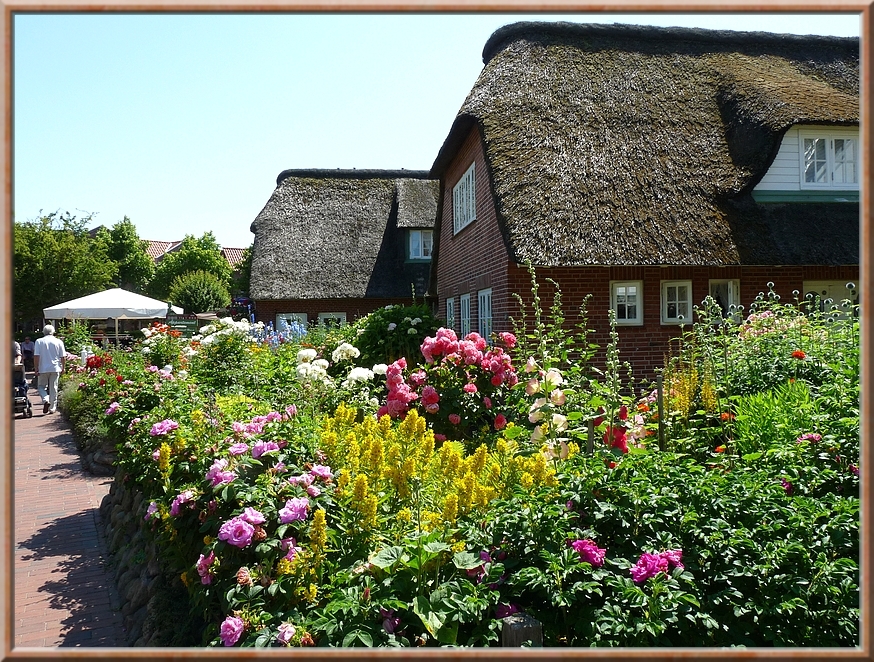 After a delicious lunch in an old Frisian house I was once again met by the heat. Therefore I decided to give the local museum a try. It proved to be a lovely exhibition with beautiful old furniture, traditional costumes and a bit of historical background. I took my time. When I returned to the road in the late afternoon the air seemed a bit more bearable so that I finally wandered through the roads to enjoy the beautiful houses and gardens before I finally headed back to Bad to spend the early evening on the beach and in the water.