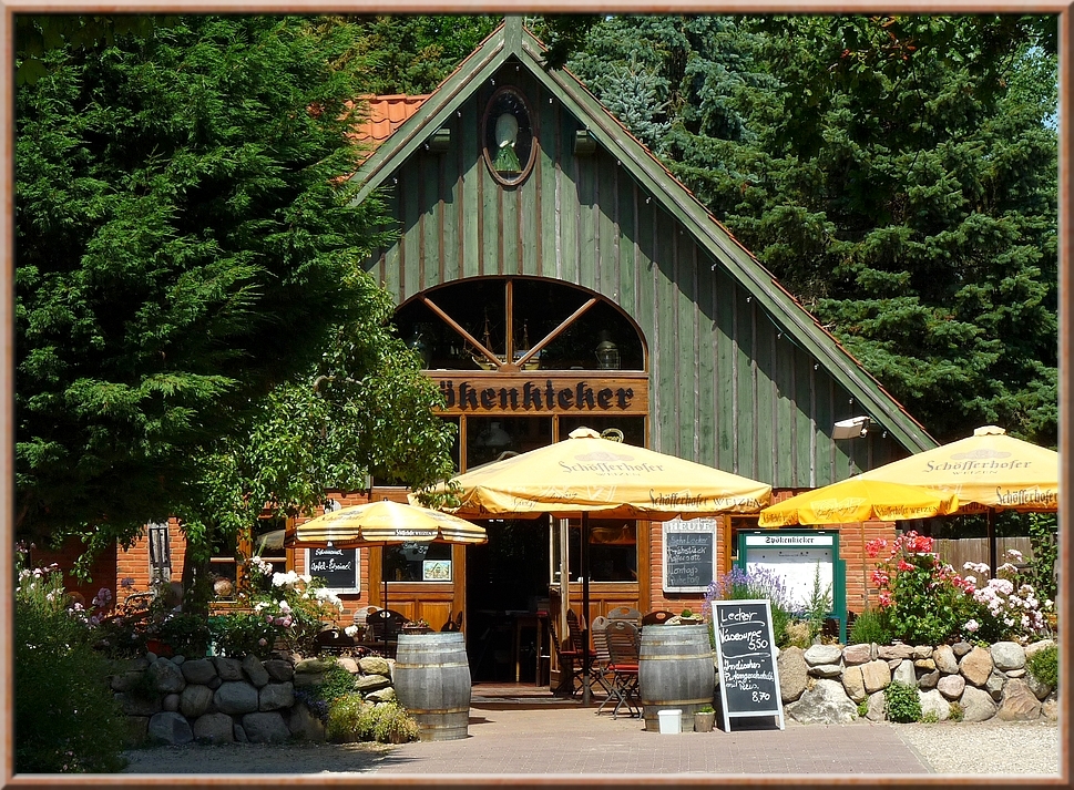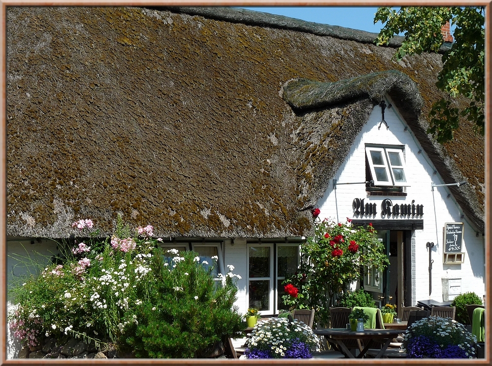 When I stepped out of the train at noon, the air was flaring from the heat. No cloud was to be seen in the deep blue sky. From the train station which is in the district Ording it was a bit of a walk through the forest to reach the district Bad, where you find the spa and the bridge to the big sandbank that is used as beach at lowtide. However I didn't stay there because my first worry was to find an accomodation for the night and I preferred to go to the much nicer district St. Peter Dorf (= village of St. Peter) with it's old houses. I turned into the main road and prepared myself for another 3 km walk in the heat of the day turning in here and there to ask for a room, but every place was fully booked. What else could you expect during the summer vacation period? After half an hours walk I realized that I was quite stupid. The main road would be the first place where everybody would turn in for accomodation, especially if they had a car. After the penny had dropped I turned into the first side road and my lucked turned on the second door I knocked on. A wonderful landlady told that yes she could offer bed & breakfast to me, because she had just gotten a cancellation a few minutes ago.