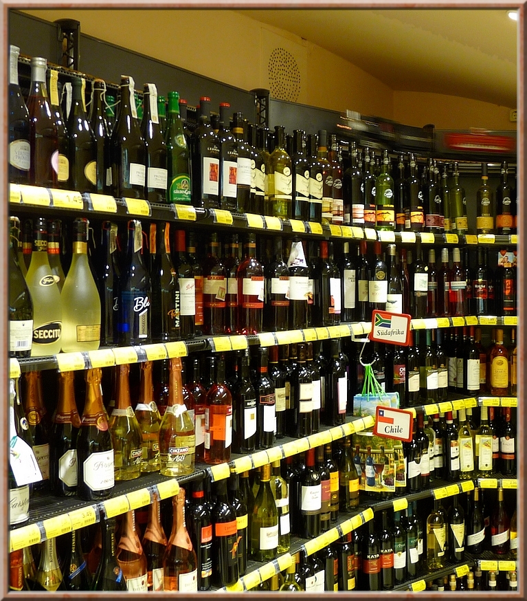The supermarket had its own little curio. Above the wine bottles ran the tracks of an LGB modell train.