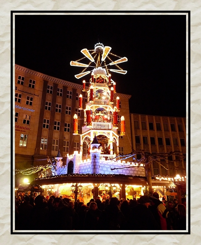 On my way back from Eisenach I had two hours to kill in Kassel. I used the time to stroll over the downtown Christmas market. It was a commercial market with lots of food stalls and a few crafts and stuff stalls, but it was more fun than waiting for my train on the platform.