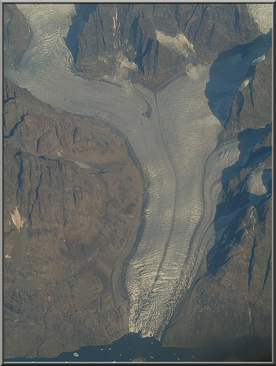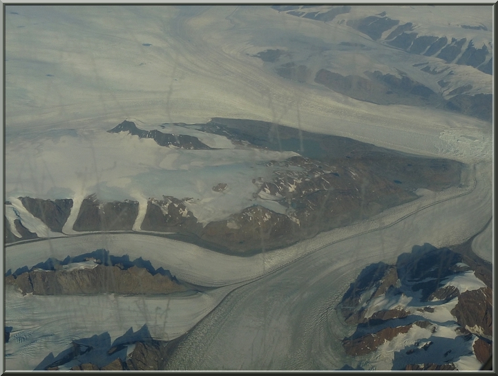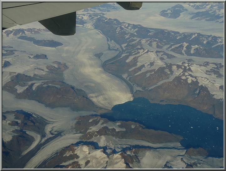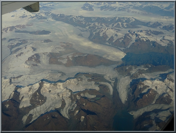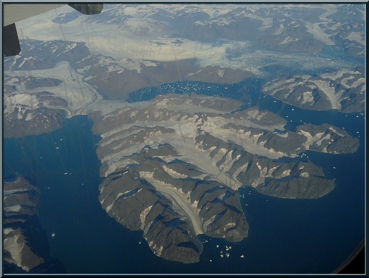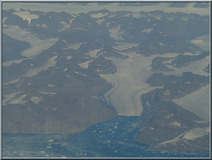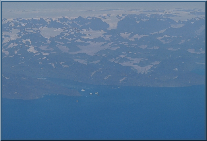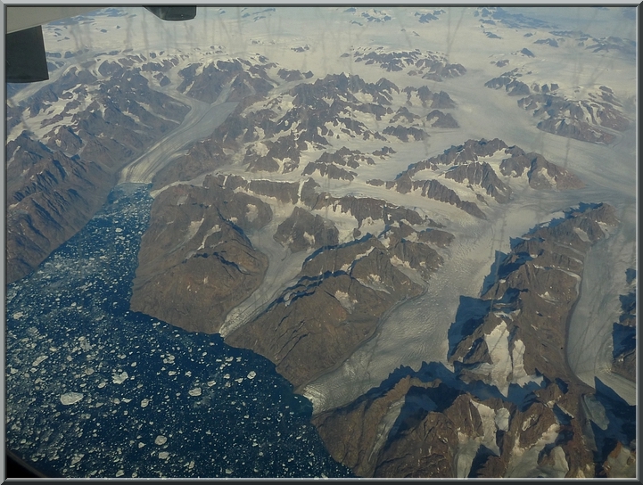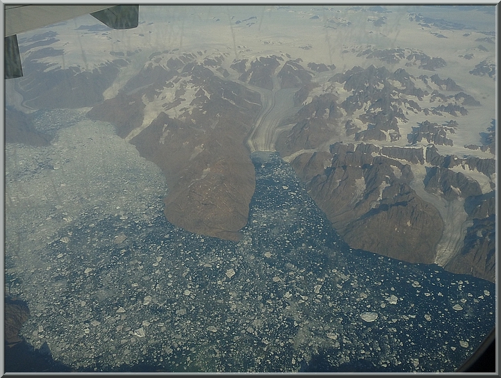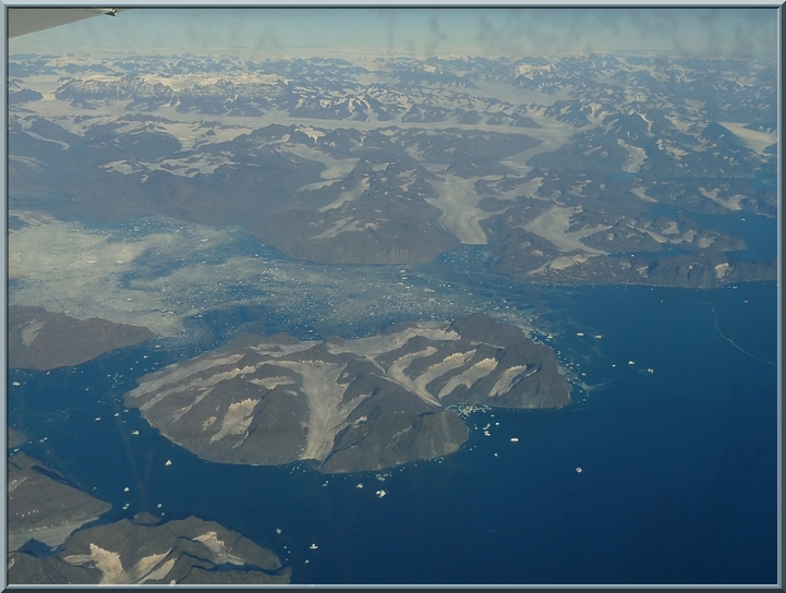 mountains and ended in the water. Icebergs drifted in the deep blue sea. A massive icefield ended at the horizon. It was even more impressive than my flight over Spitzberg in 1997. I could not take my eyes of this fascinating landscape. It was like huge birthday gift, though I had no birthday that day.
