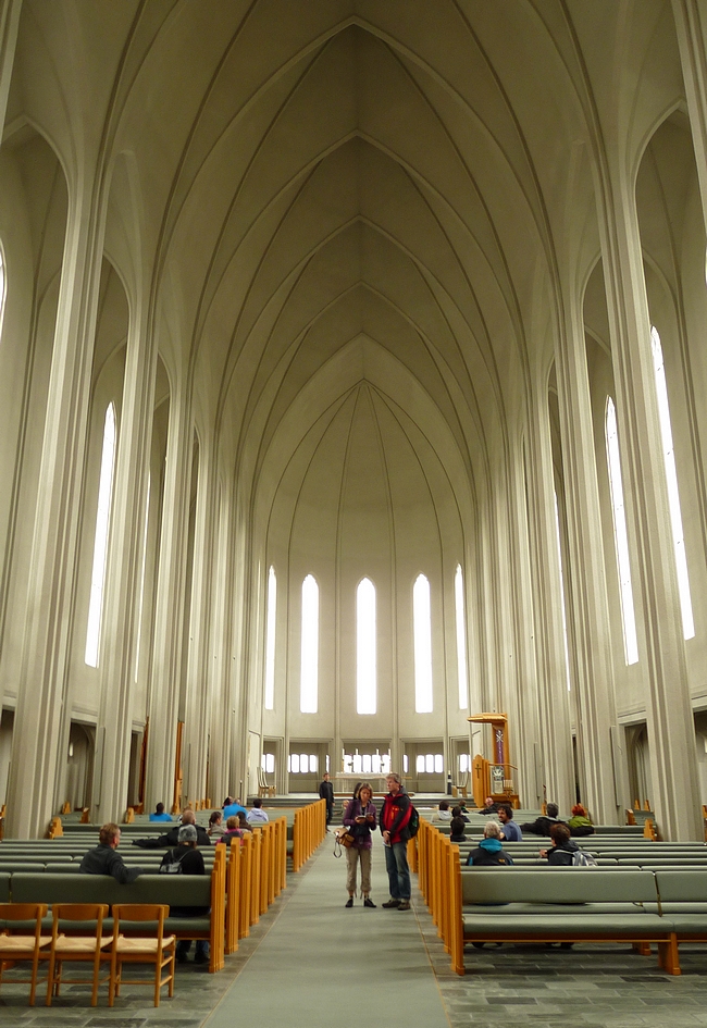 Hallgríms church towers like an obelisk above the city. Situated on top of a hill above downtown Reykjavík the landmark is visible from afar. Despite being built of concrete it radiates a demure peacefulness especially, when you have entered the nave.