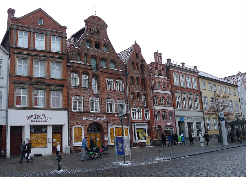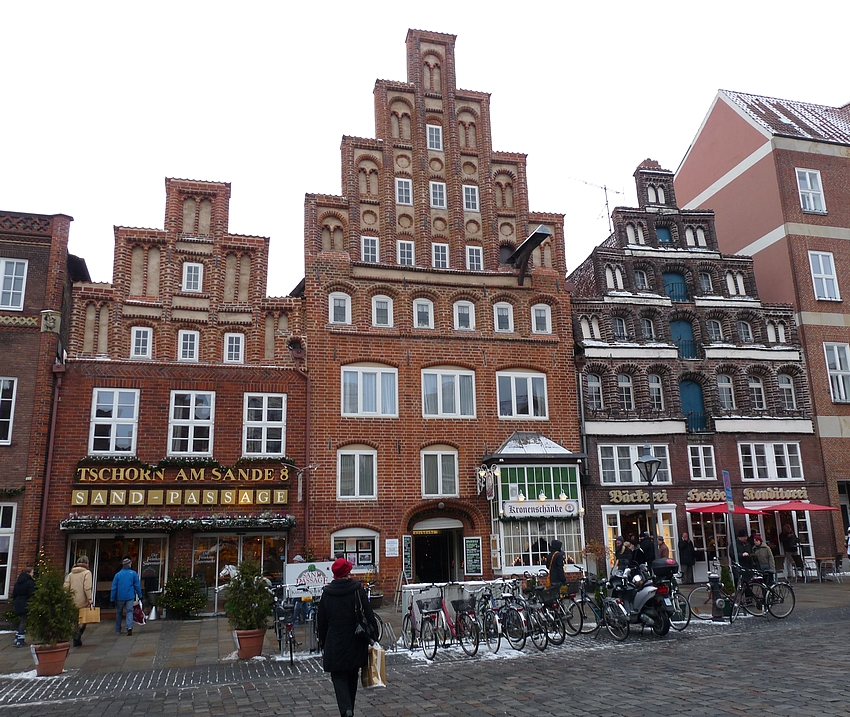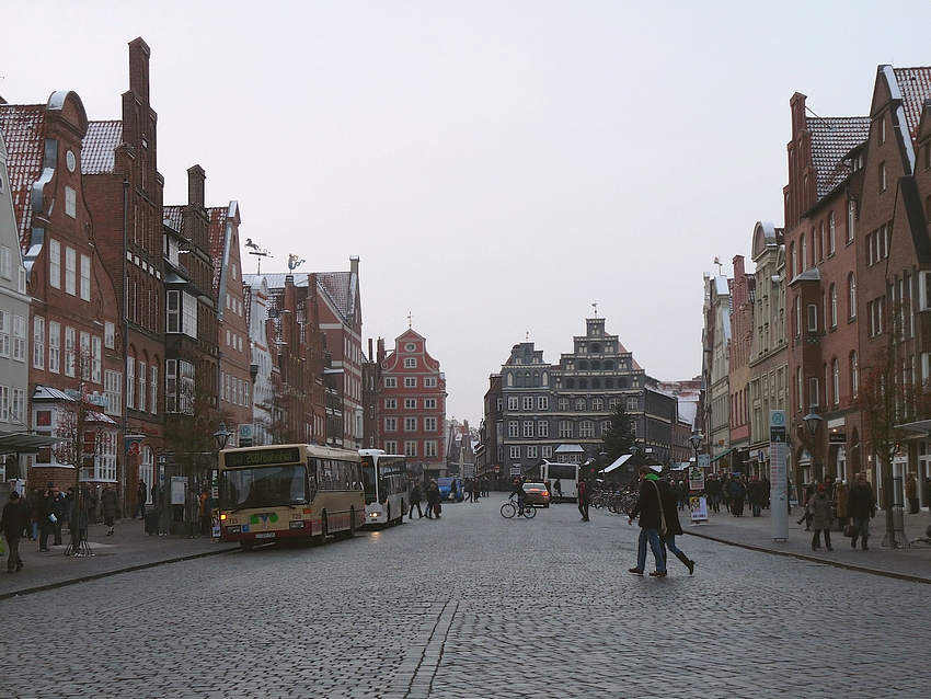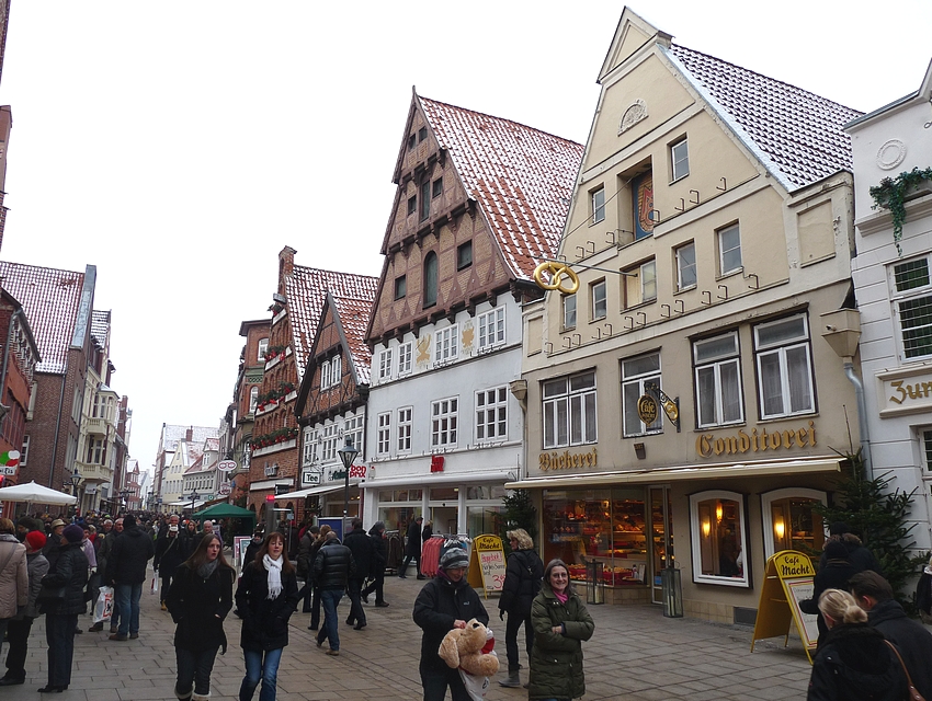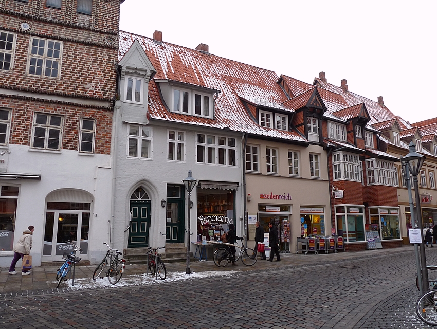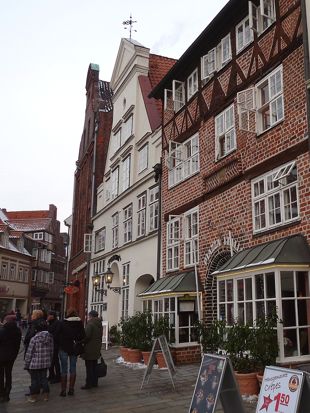 Lüneburg is an old Hanseatic town. It was an important supplier of salt for the fish industry in Lübeck, Sweden and Bergen, Norway. Skew-whiff brick houses lean in all directions. Massive walls hallmark the old traders's houses. Little shops are inviting the passers-bye for a closer look at there wares.