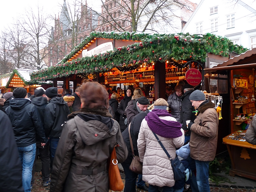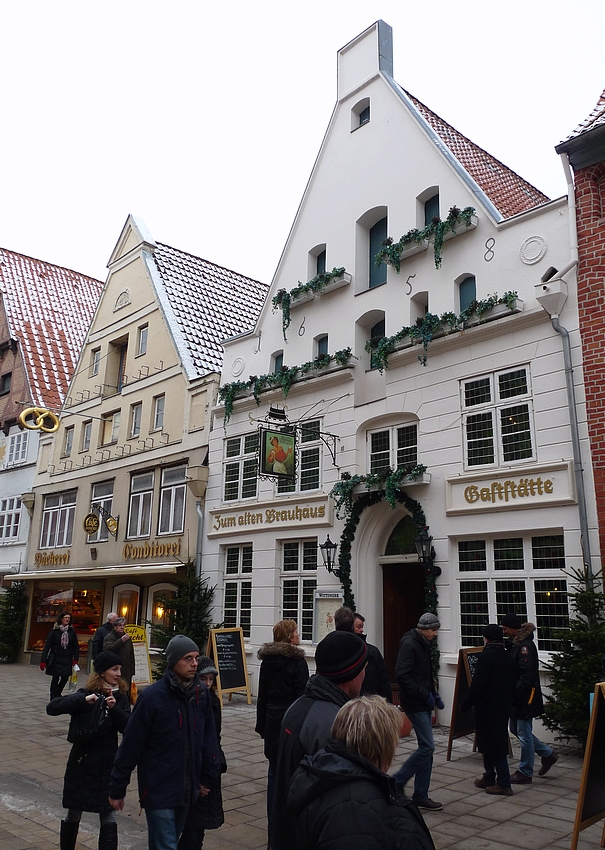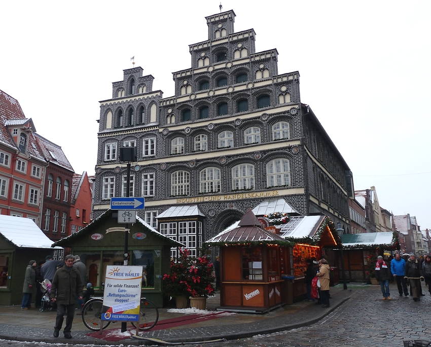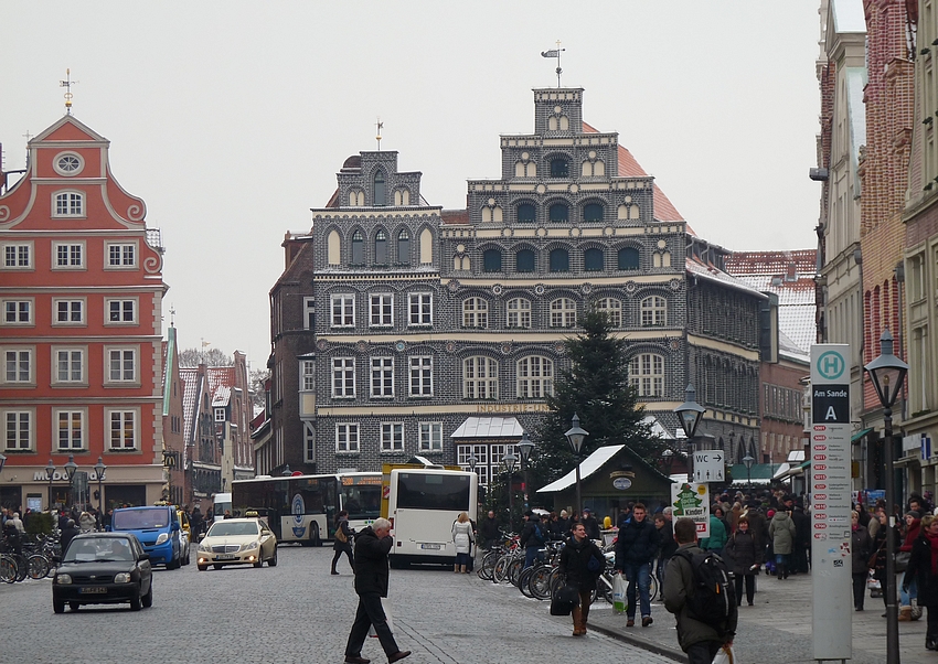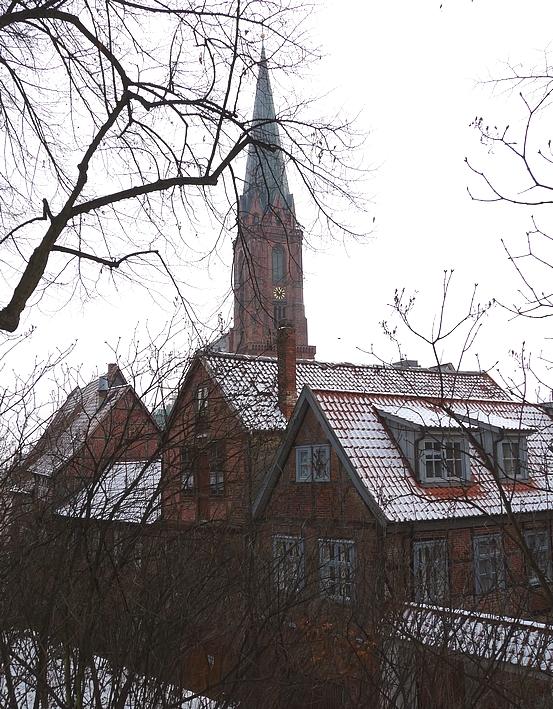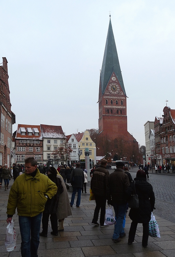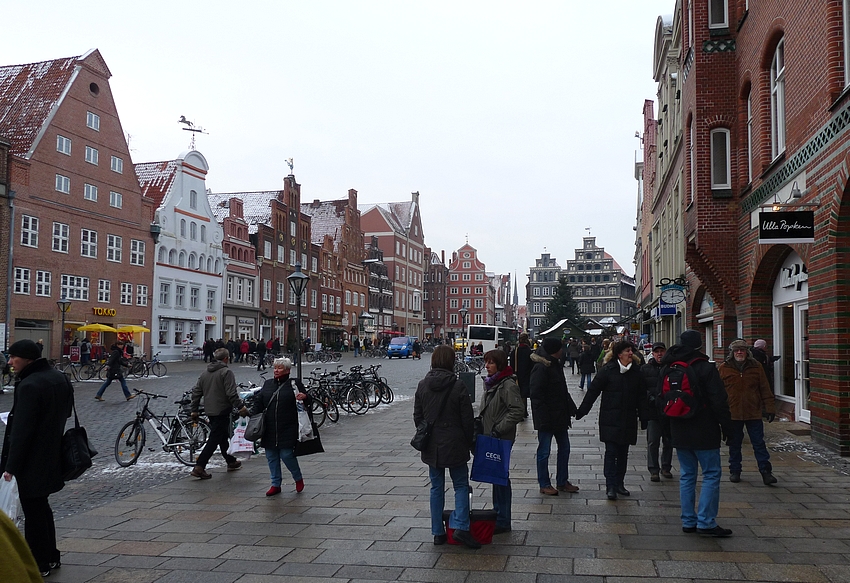 It was the second Saturday of December and the day of our monthly hike with the Church Walkers of Hamburg's English Church. The temperature had dropped several degrees below zero and the cold was biting into my legs, when I stepped out into the morning ready to meet my fellow walkers at the Central Station. Lüneburg was our goal today, a lovely town half an hour train ride away from Hamburg. When we got down to the plattform the place was alread overcrowded and we had to fight our way to the end of the train to find a waggon with sufficient free seats for us. Lots of people seemed to have had the same good idea to spend this dry winter saturday with shopping presents and strolling over the Christmas market in the lovely town center.