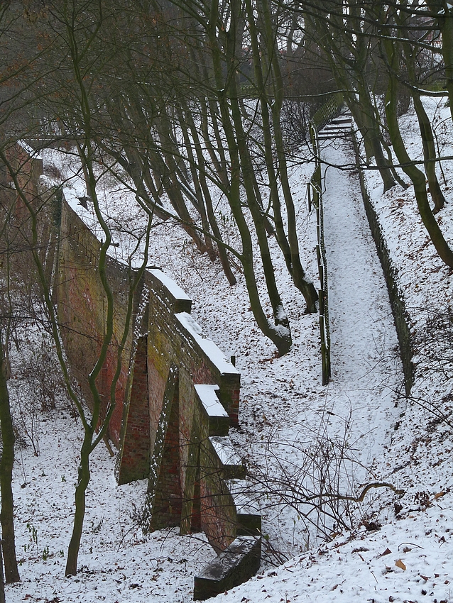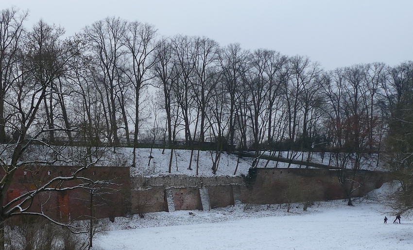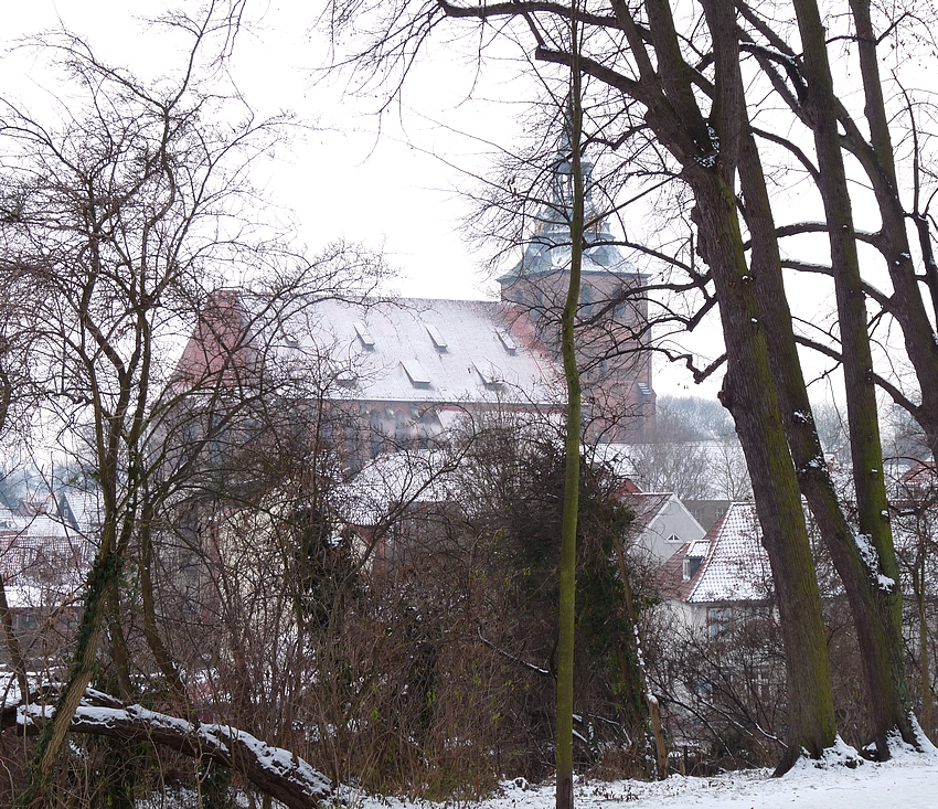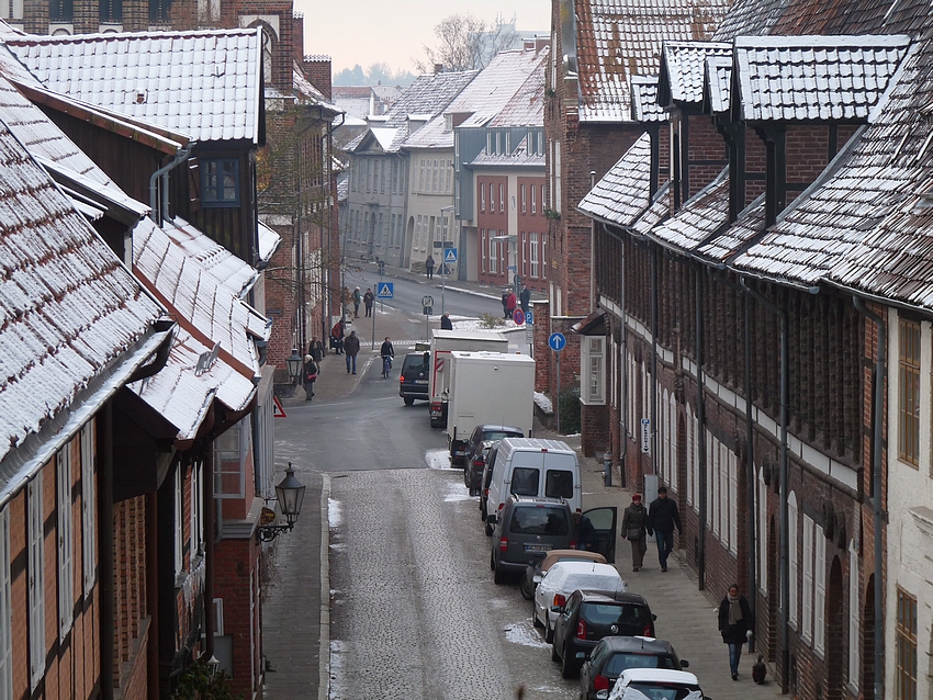 Finally we managed to get through the throng of people on the Christmas market and shortly afterwards reached the old town wall on which we continued our walk. It was a wide rampart fit to carry canons and other big weapons to defend Lüneburg. Nowadays it simply offered a nice view over the roof tops and into the alleys and streets.