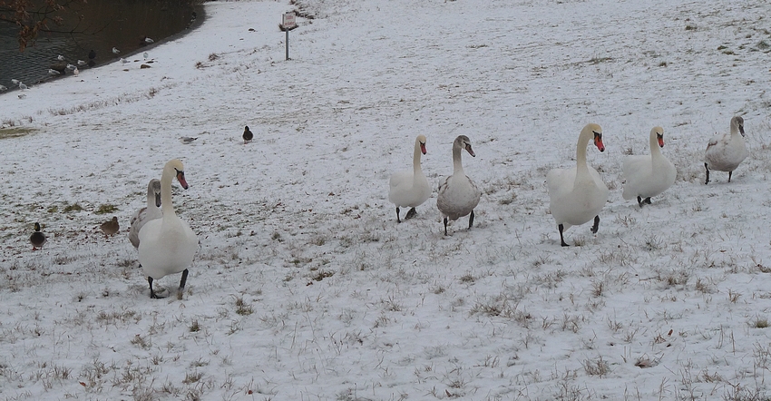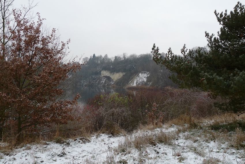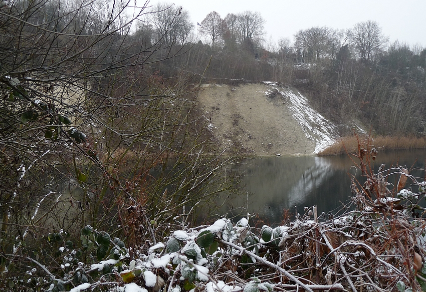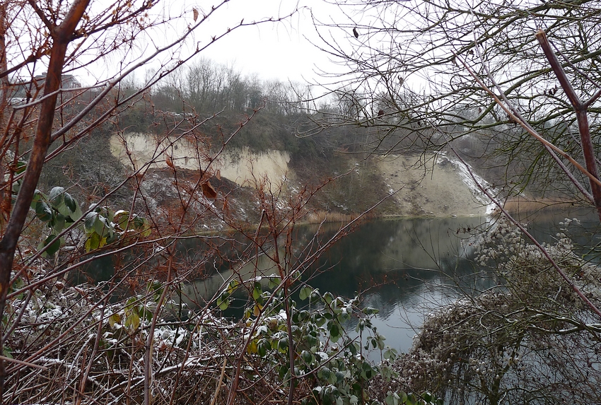 A little later we left the park and proceded to the Kreidebergsee (= Chalk Hill Lake). We only had to cross a road and walk down along quiet street to reach our next on our walk. At the foot of the lake a group of swans and ducks greeted us in hope for food.