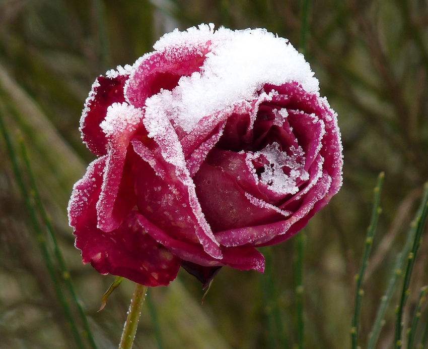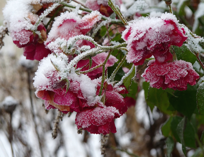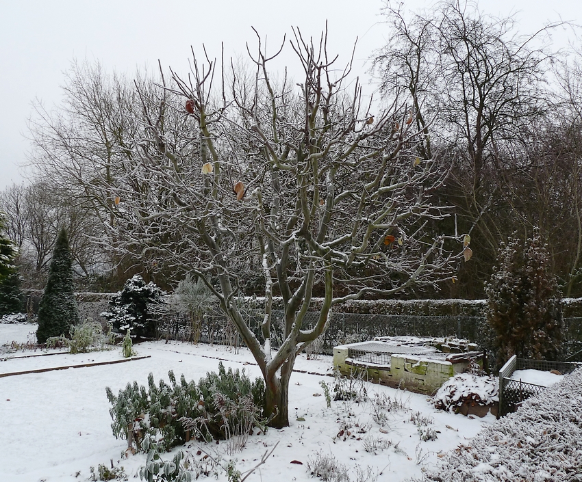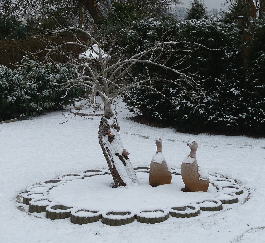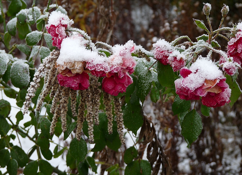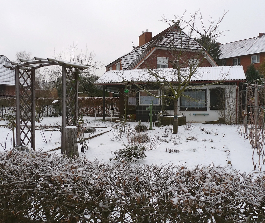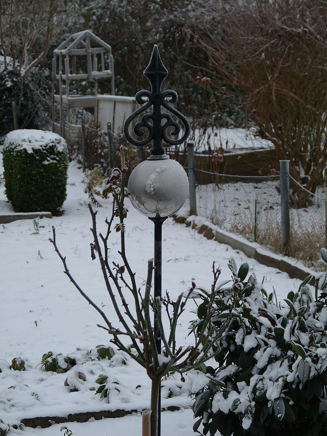 Our path led through colony gardens, which were a haven of winter impressions. Daintily frozen leaves, iced-over apples, glazed rose blossoms, the last survivors of the season. Tiny cabins, garden deco sometime queer competed for our attention.