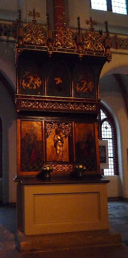 After the walk through Lüneburg I was decently cold and I decided to go into one of my favourite churches to defreeze. St. Johannis church is a landmark in Lüneburg due to its slightly lopsided tower roof. Inside its a beautiful combination of a mostly old church with three modern stained glass windows in one side ship. But its most breathtaking feature is the beautifully crafted big gothic church organ. It was originally built from 1551 till 1553 but further enlarged during the centuries. Johann Sebastian Bach, who went to school at St. Michaelis School got lessons here from 1700 til 1702. Those who are capable of reading German can find detailed information of the organs history on