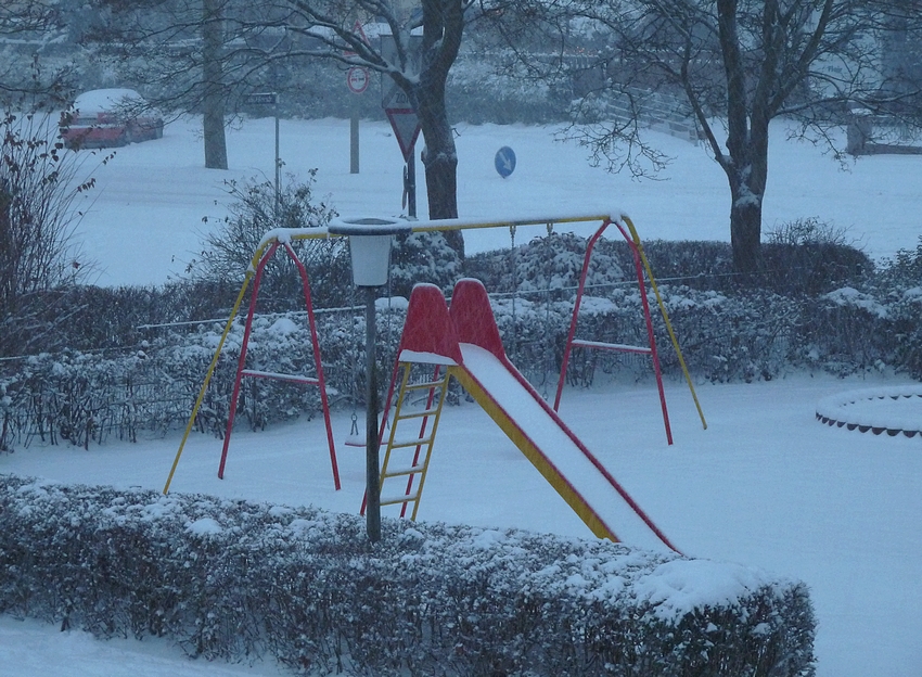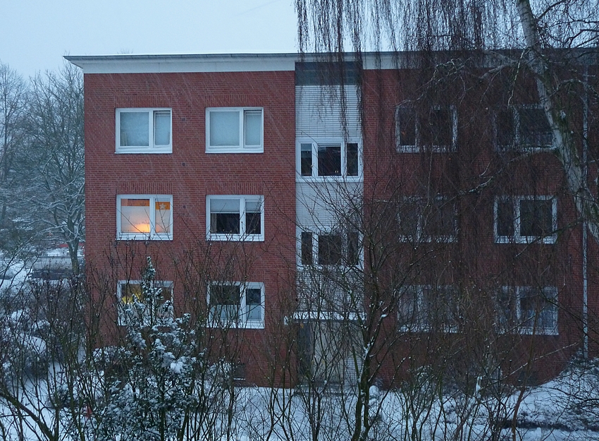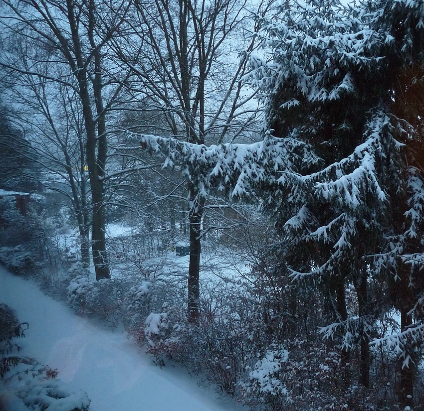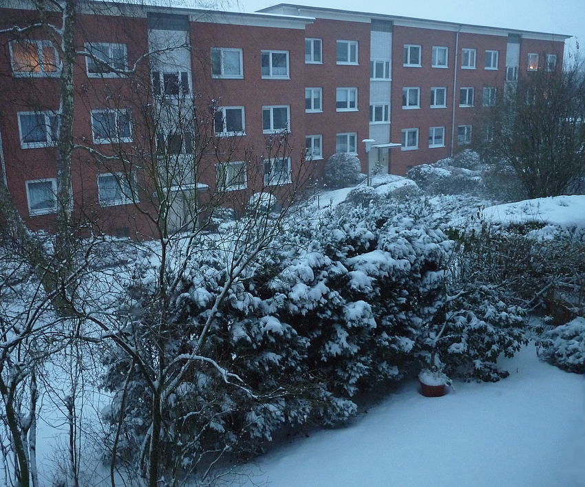 When I woke up this morning and took my first glance out of the window a thick layer of snow covered the trees and gardens. The walkway below was still undisturbed by footprints. Snowflakes danced in the air and are still dancing. Thick white and fluffy are they falling down from a grey sky. The house is still quiet while the world outside is becoming more and more beautiful. Soon I will be standing in the kitchen baking cookies for this afternoon. I can already imagine the smell permeating from the oven. A friend is coming over for celebrating advent, chatting in candle light, sipping tea or coffee - perhaps going out for a winter walk. That is Christmas for me.