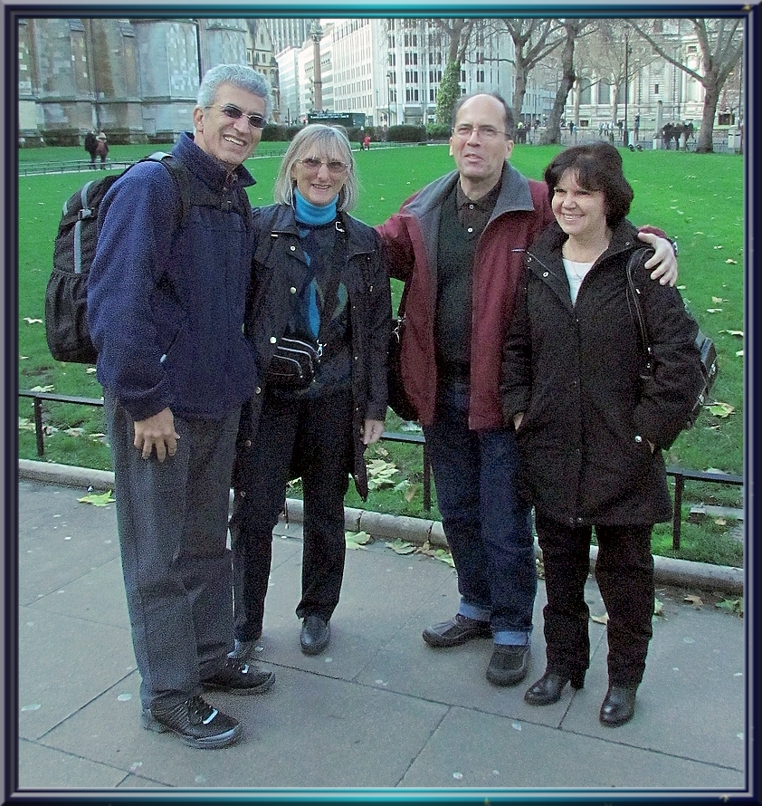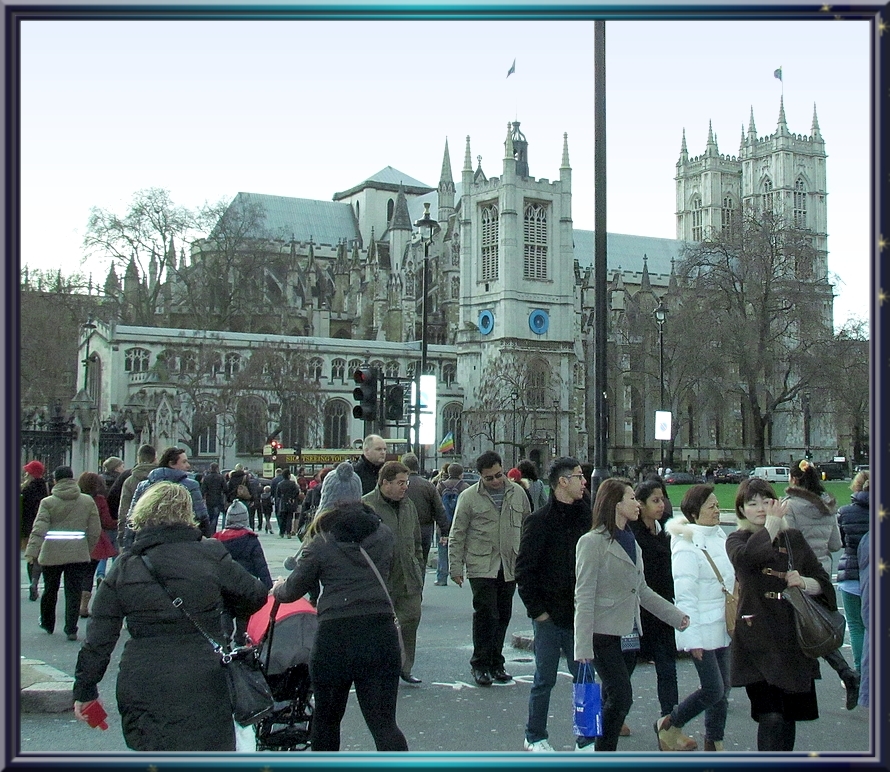 At highnoon on the 23rd December I fell around Celia's neck.and had the joy to be introduced to her husband Michael. We waited opposite of Big Ben and Westminter Abbey searching the constant flow of people for Fabio and Zenilde. They soon arrived and we crossed the road to look at the cathedral. Unfortunately it was closed to the public on Sundays, but the weather was nice, so we didn't mind to do a really touristy outdoor sight-seeing walk instead.