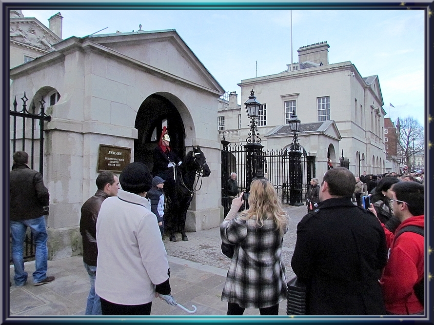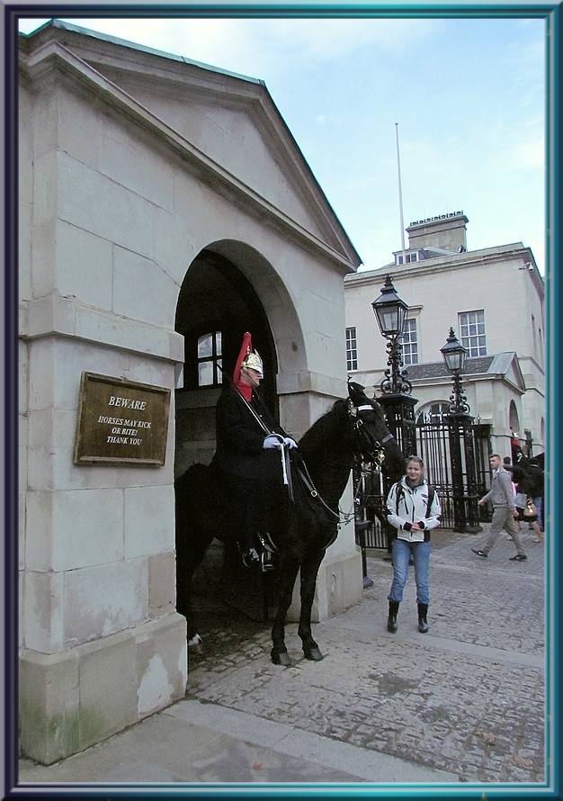 We followed the road along White Hall Pallace Our first stop was the Horse Guards Parade.