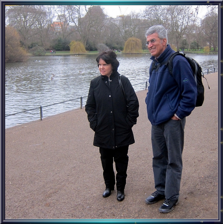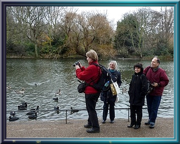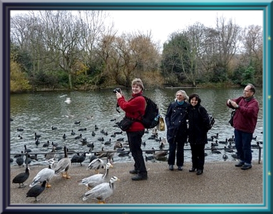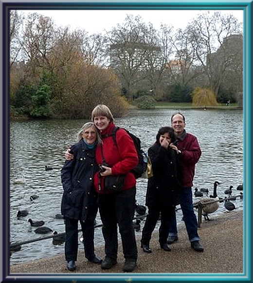 We walked onwards to Traffalgar Square, where we could admire the lively traffic of Charing Cross Road circling around as well as the Nelson Column and the National Gallery. It was time for a little lunch break in a café near the square. Afterwards we strolled through St. James's Park, where we should meet Celia's and Michael's son James. The day was like a parcel. You cautiously loosen the ribbon and open.the box. You take a curious look and out comes another dear person you haven't met before. It was such a pleasure to get to know both their sons. Matt joined us later that afternoon, a few minutes before had to hurry away to catch my flight.
