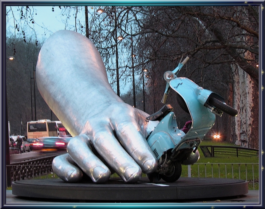 Vespa and Hand by Lorenzo Quinn, Park Lane