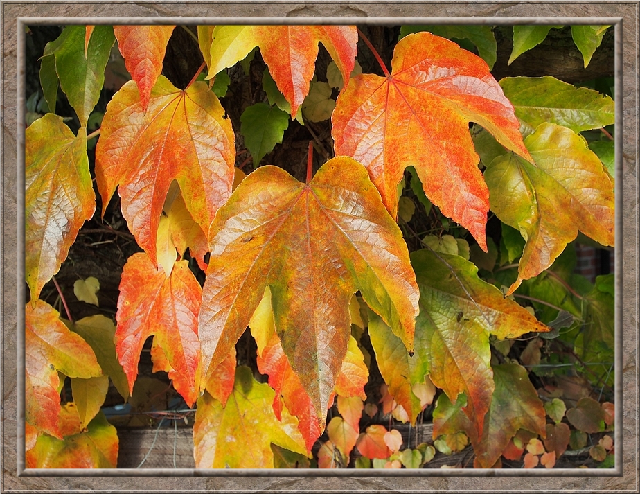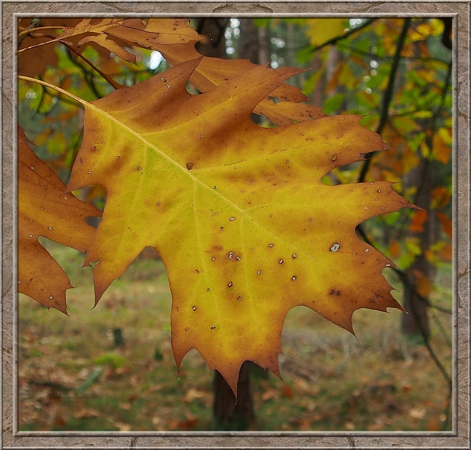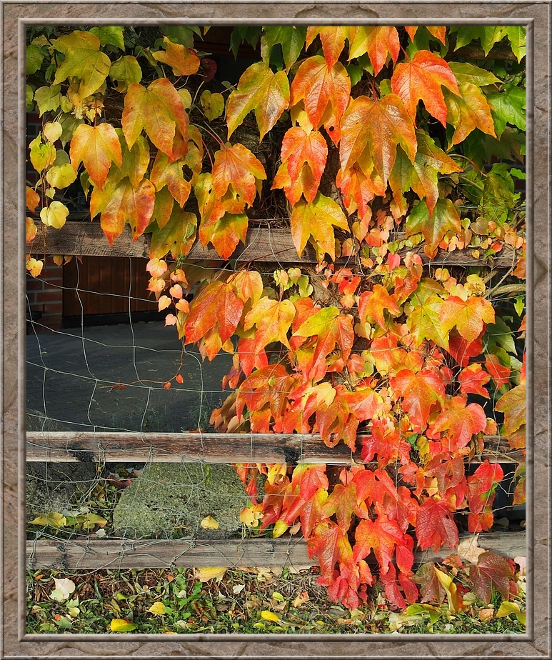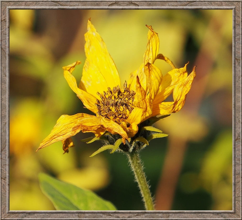 A thick cloud of smoke wafted through the air. A farmer making a bonfire from leaves and other things he wanted to burn. A field of withering sunflowers on my right hand side. After the geese left I returned to the village. I rejoiced in the colourful foliage of maple, oak and fruit trees. Red, gold, brown and still some intense green.