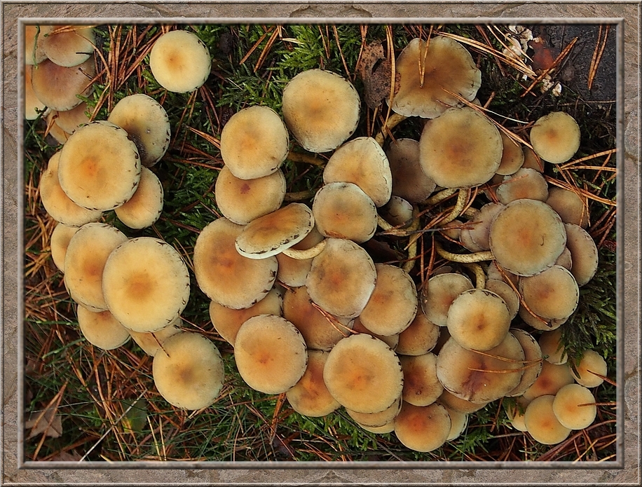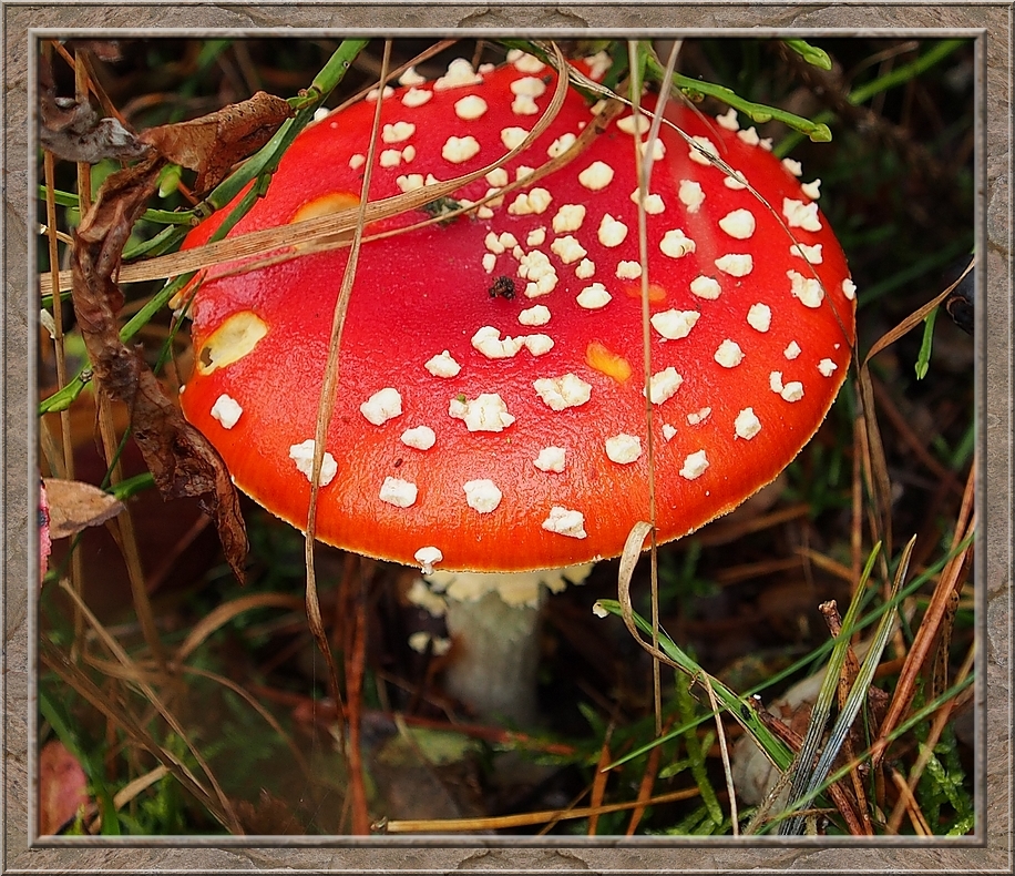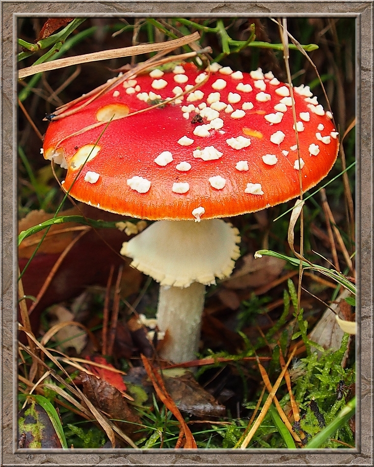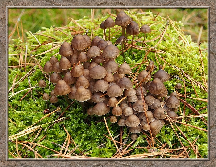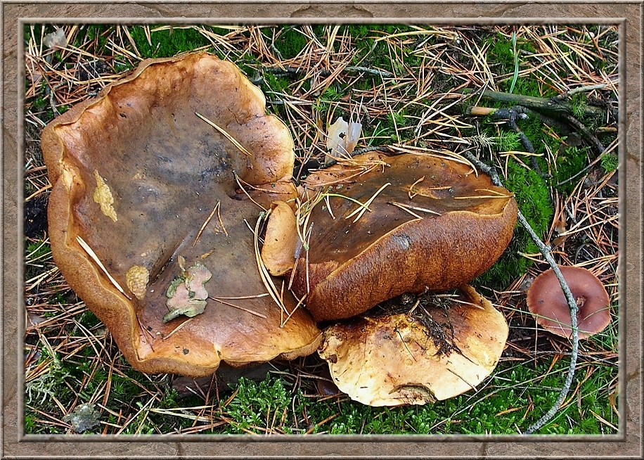 There were giant mushrooms and small ones, all shades of brown, whitish, orange, purple, red with and without white dots. Hats up like somebreros or down like bobble caps. They were growing on the ground, on stumps and rotting logs. Each time I turned my head I seemed to discover a new species.