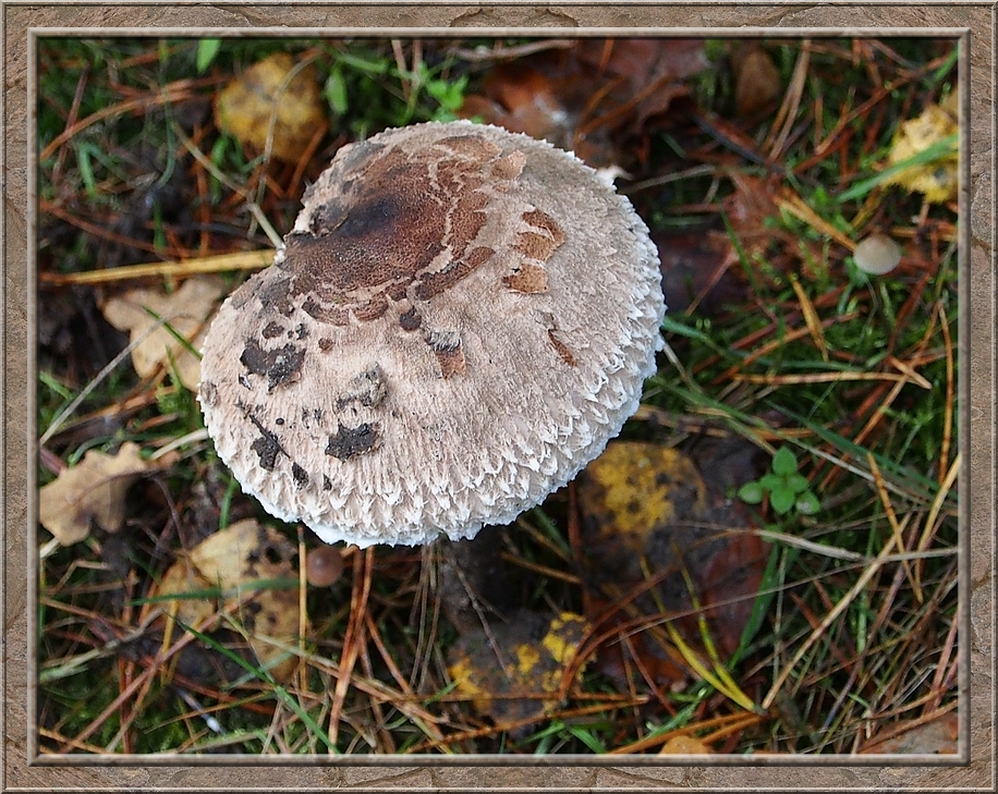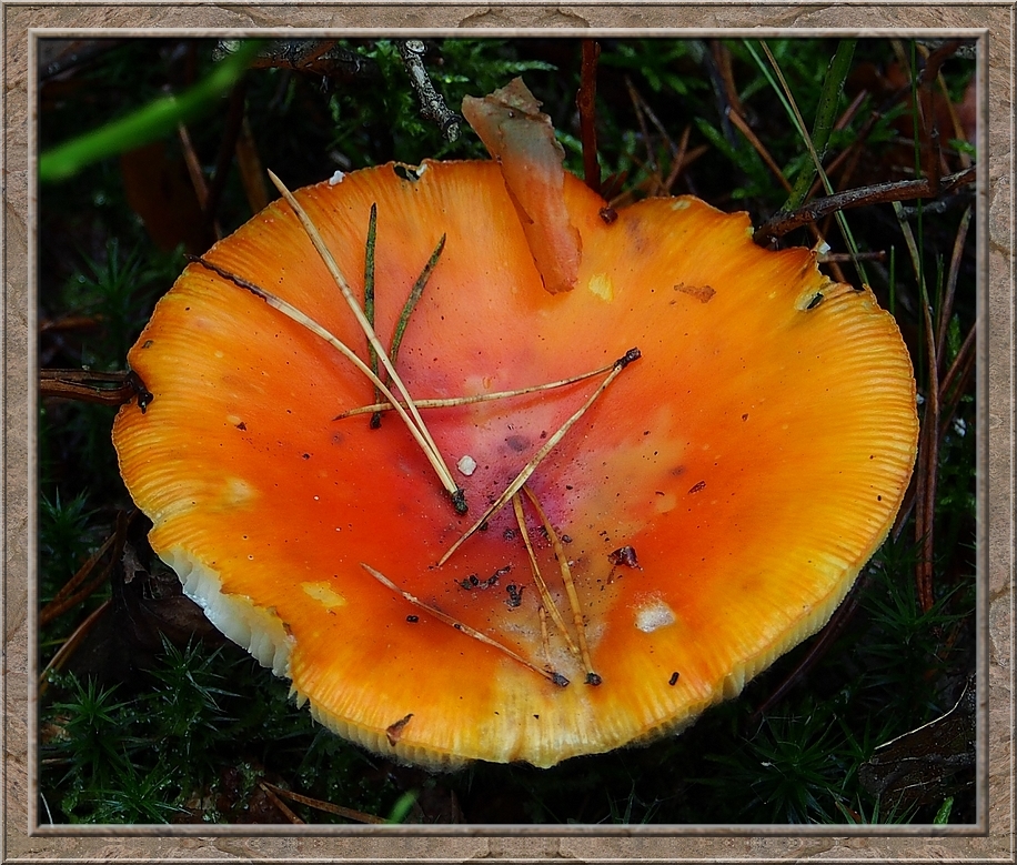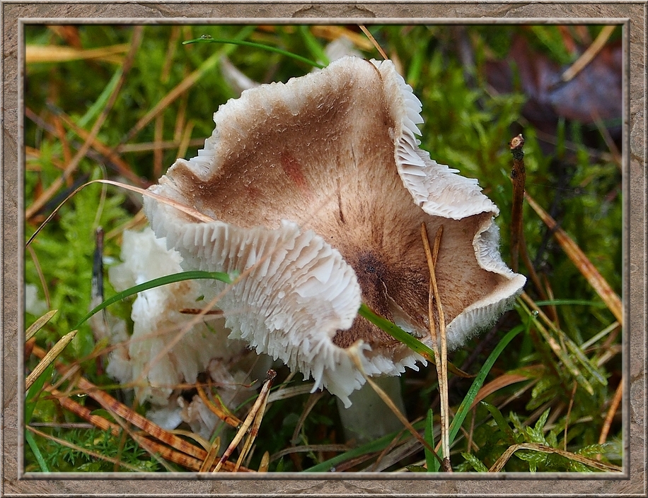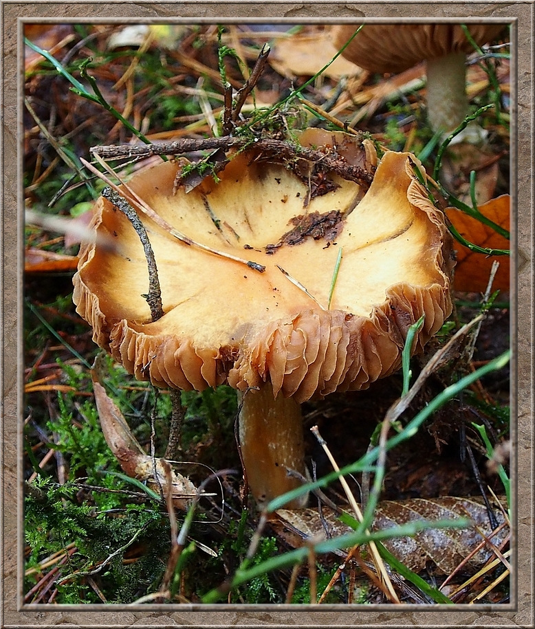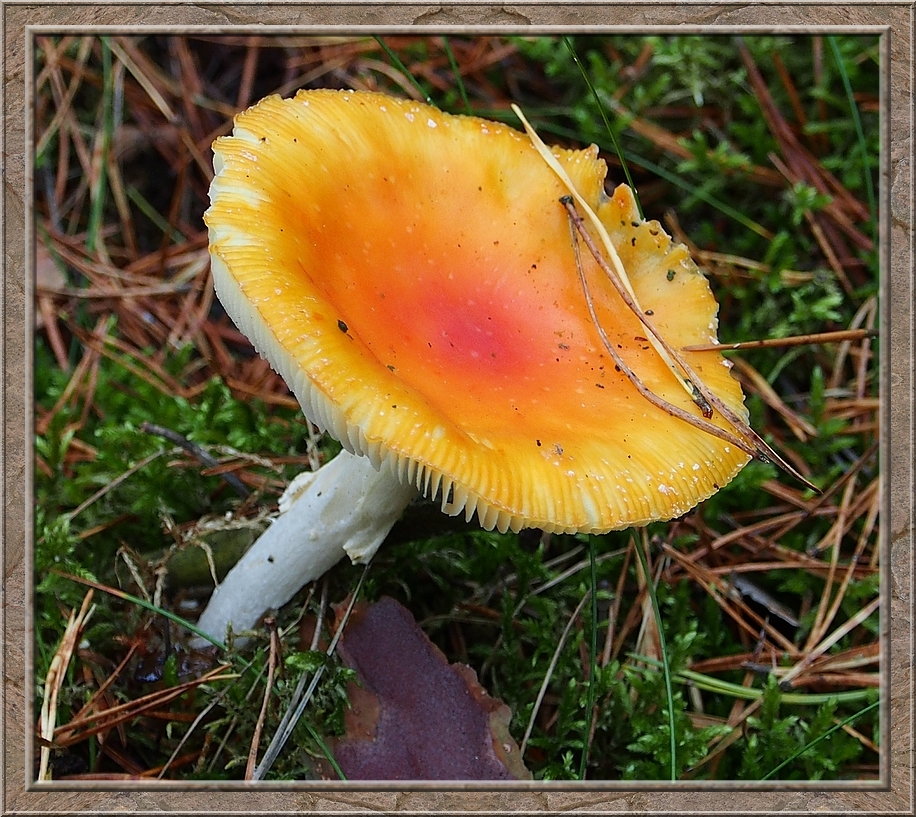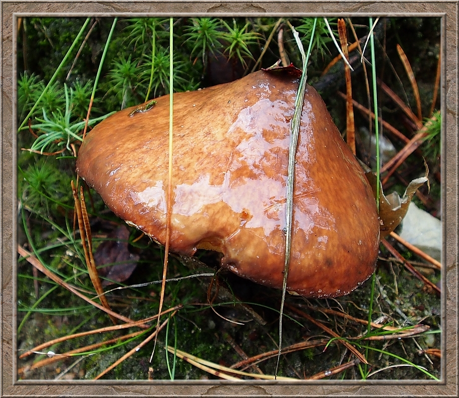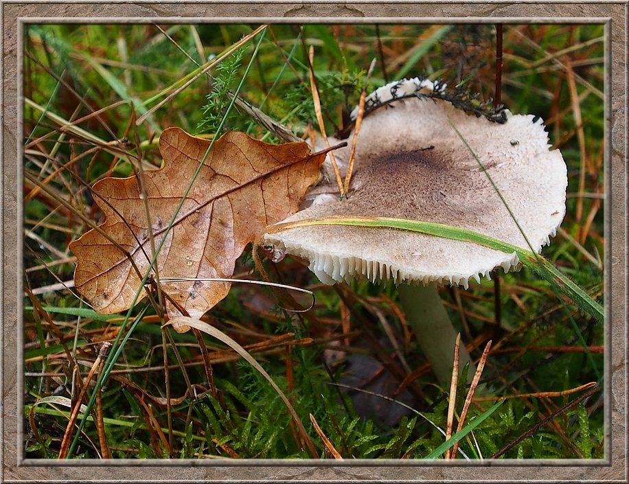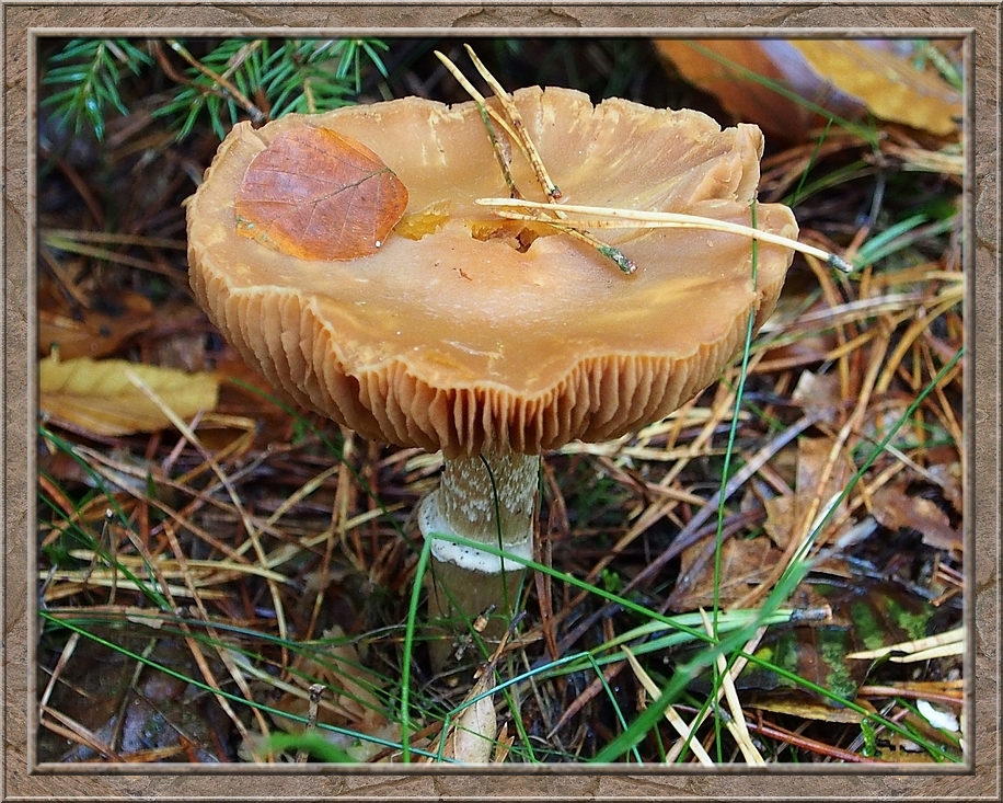 I turned into a muddy forest track that led to Röthen. A craw croaked somewhere in the treetops. The path was furrowed by tractor wheels. The rain of the past days was creating puddles in the dents, which made walking a slippery affair. Whereever I looked I discovered mushrooms of various shapes and colours, sometimes trampled down, but mostly almost intact. It was fascinating to look at them, so I decided to conduct the healthy way of collecting: by photo camera. No risk to poison myself this way.
