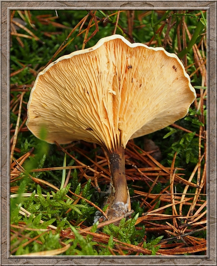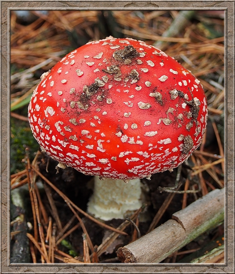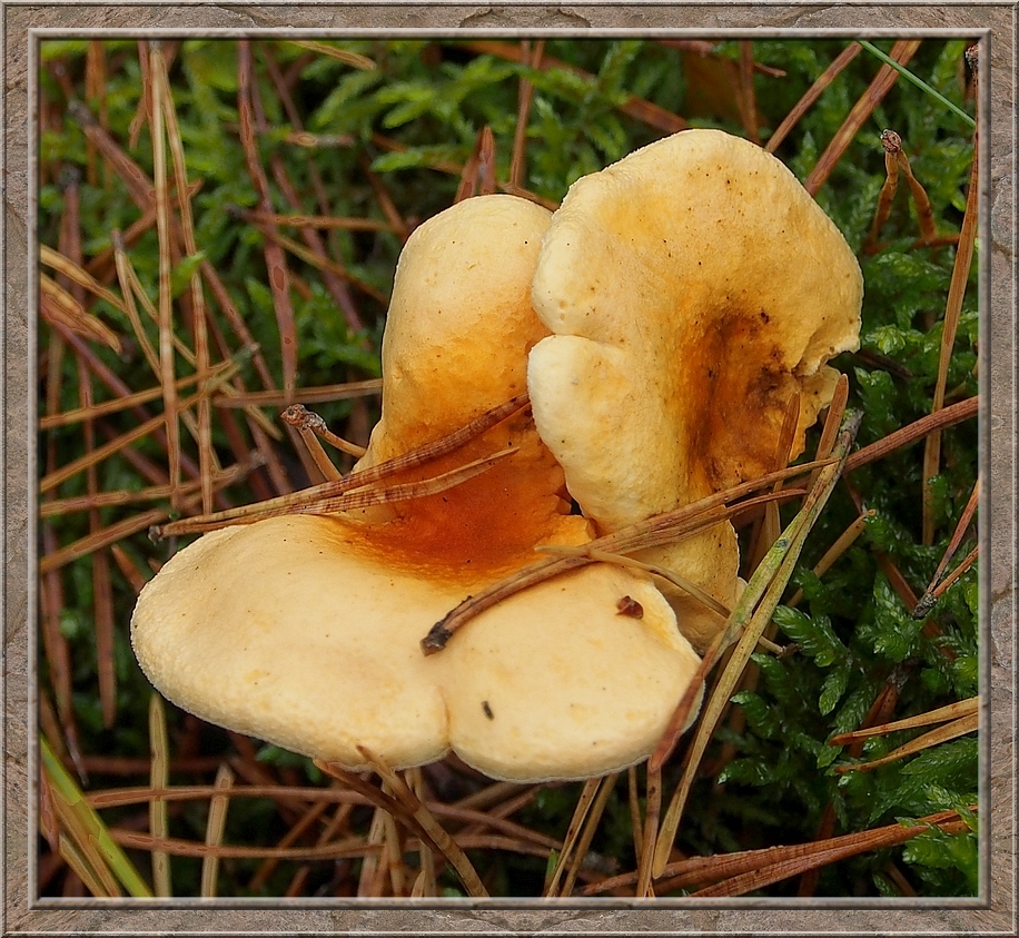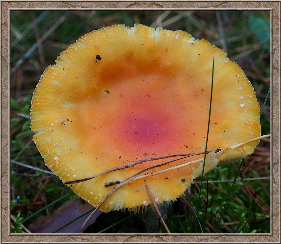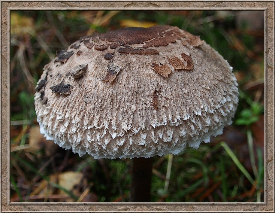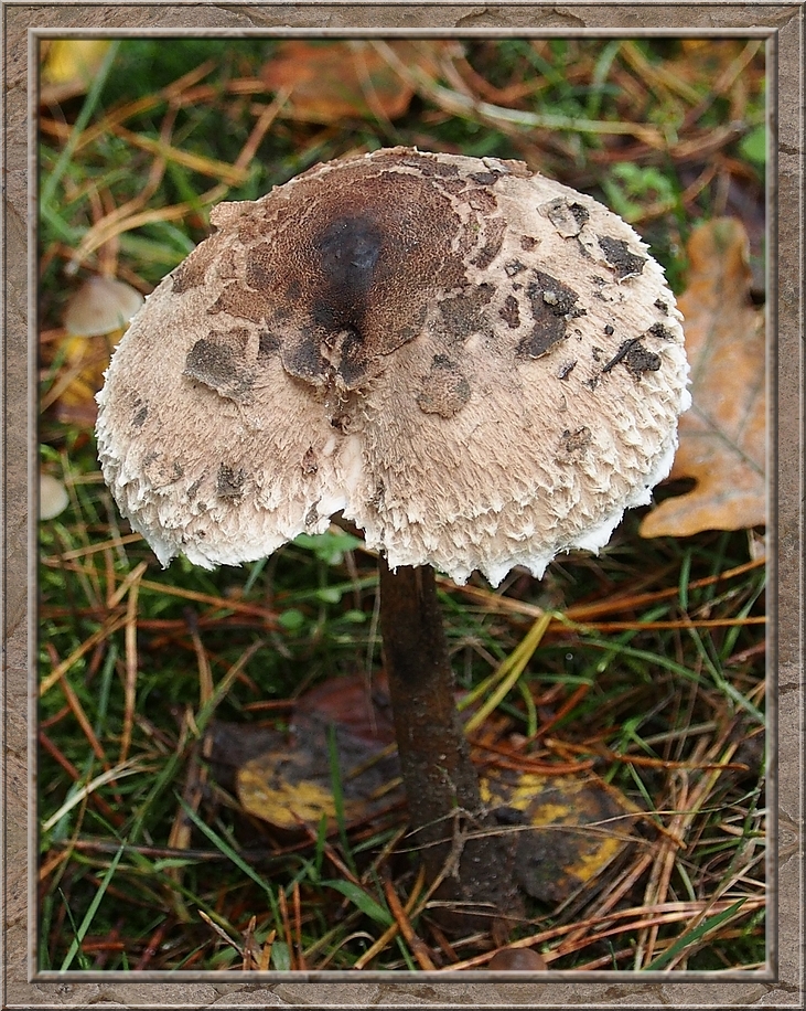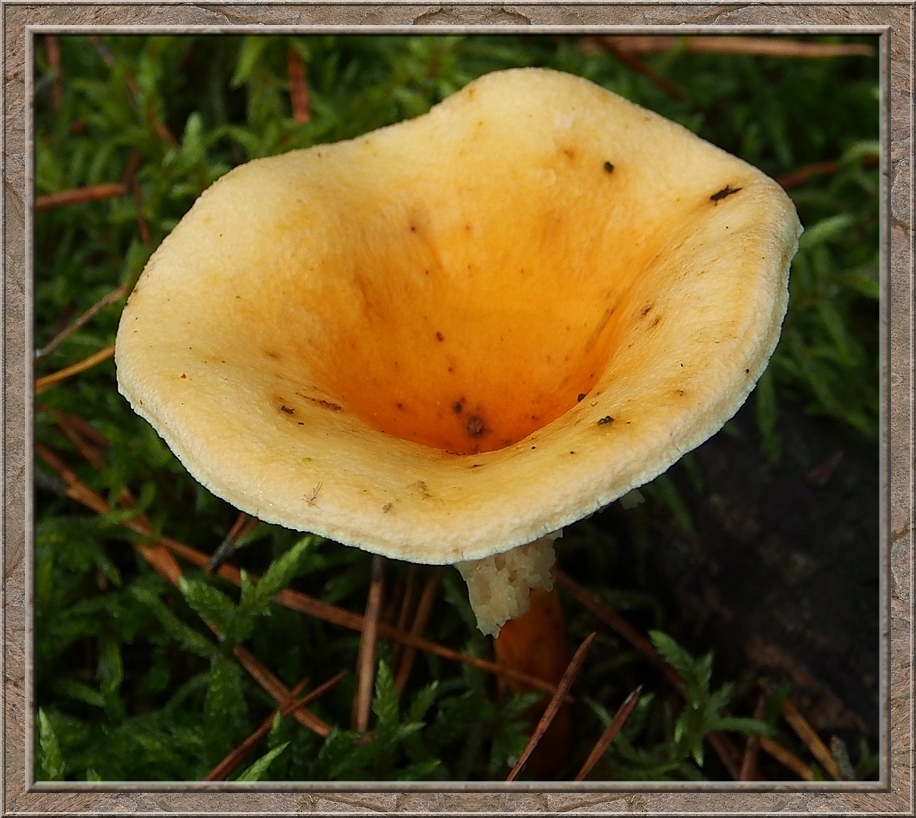I turned into a muddy forest track that led to Röthen. A craw croaked somewhere in the treetops. The path was furrowed by tractor wheels. The rain of the past days was creating puddles in the dents, which made walking a slippery affair. Whereever I looked I discovered mushrooms of various shapes and colours, sometimes trampled down, but mostly almost intact. It was fascinating to look at them, so I decided to conduct the healthy way of collecting: by photo camera. No risk to poison myself this way.