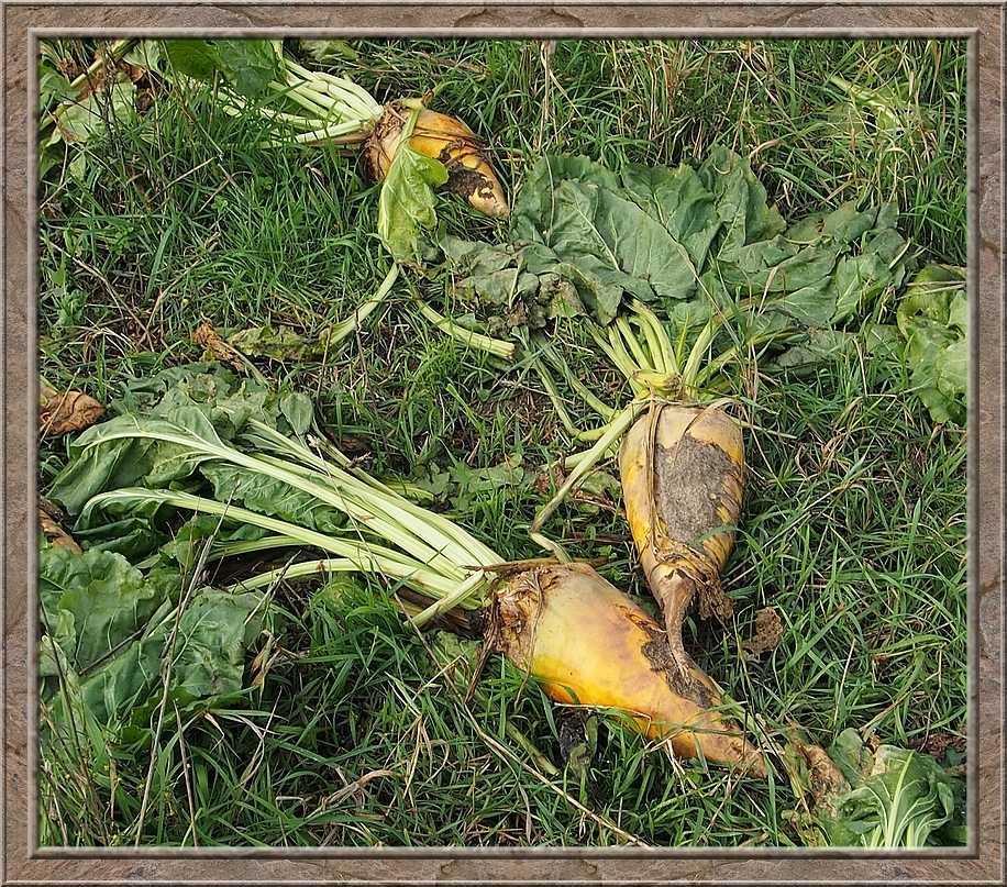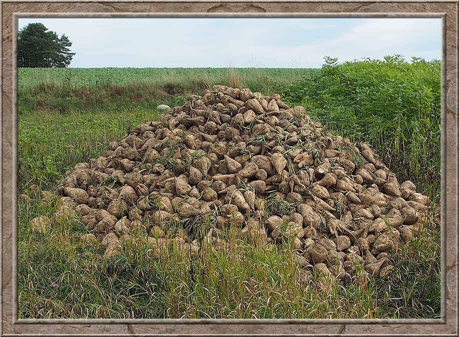 When I reached the outskirts of Röthen I turned back and walked past a couple of smaller tracks before I turned right and headed north in direction of the train line. After a while I came out of the forest and crossed an acre. Two kites were circling the sky on their search for mice or other little animals. I passed a pile of sugar beets. Some swedes lay around too,